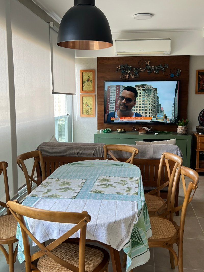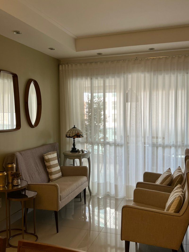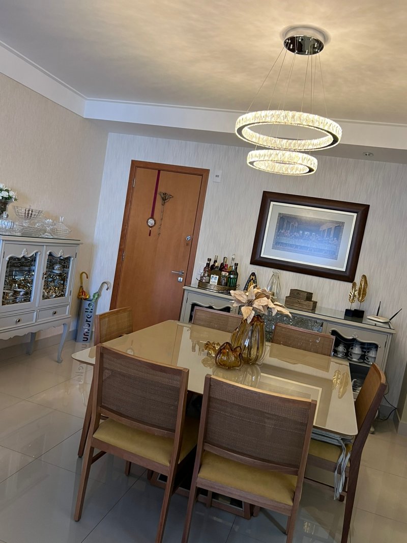 3 suítes ricas em armários e ar-condicionado, sendo a master com closet. Ampla sala para 3 ambientes, lavabo, sacada gourmet com churrasqueira, armários e fechamento em vidro, cozinha rica em armários e lavanderia com banheiro. 3 vagas de garagem + box privativo.