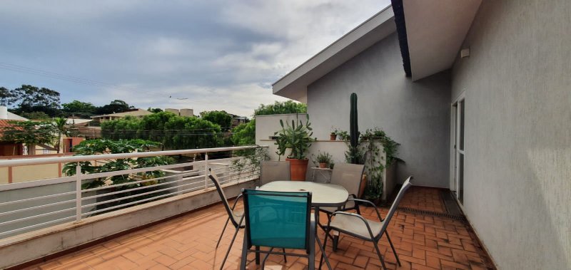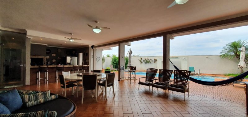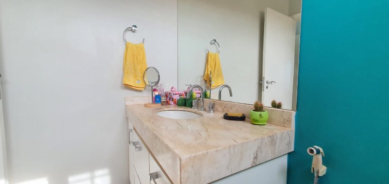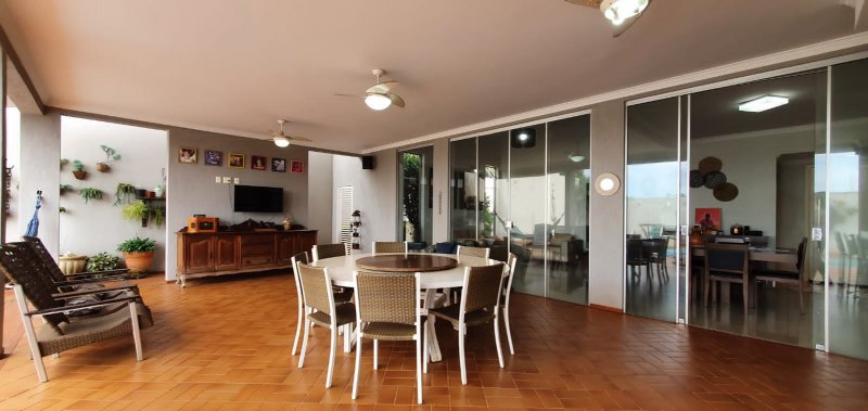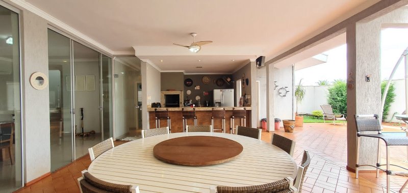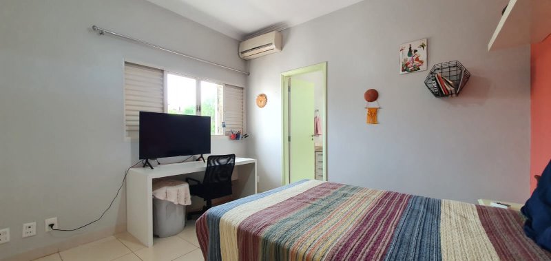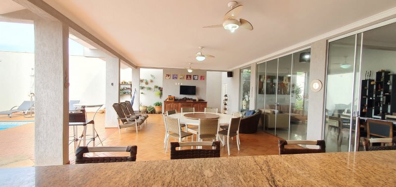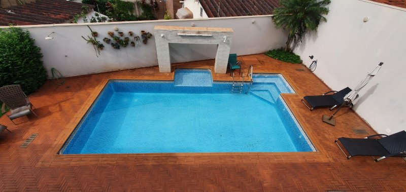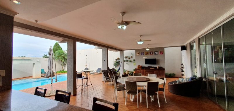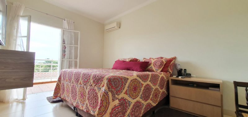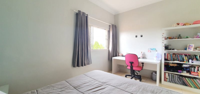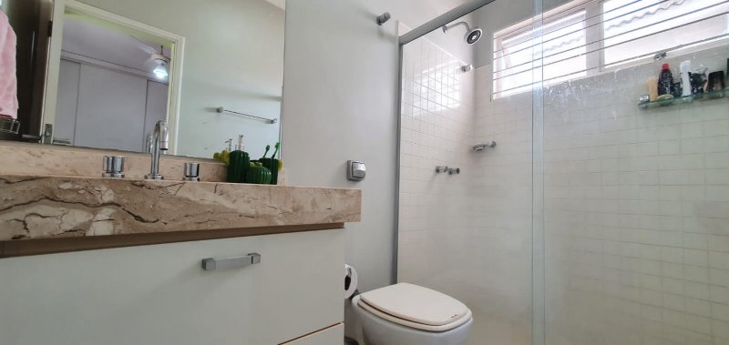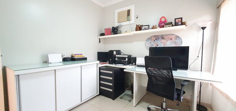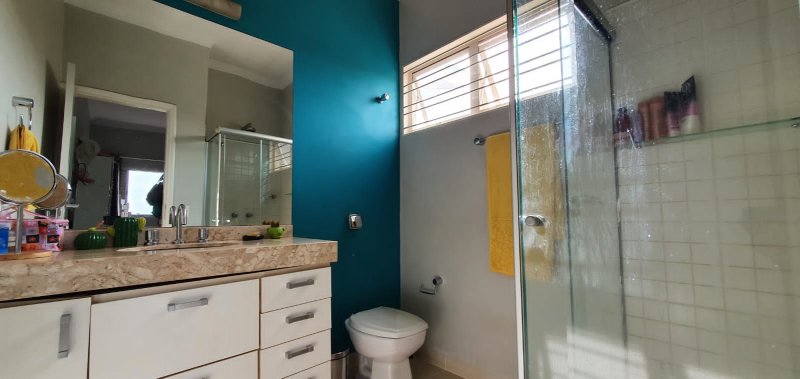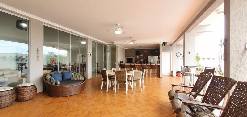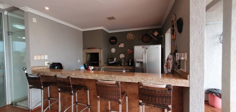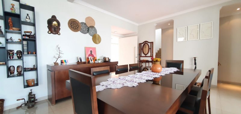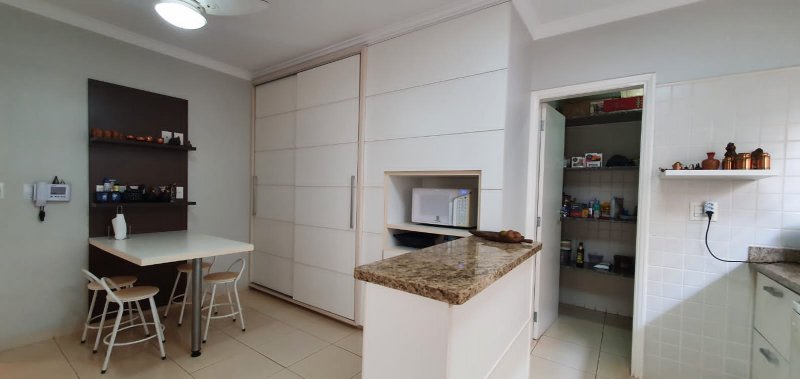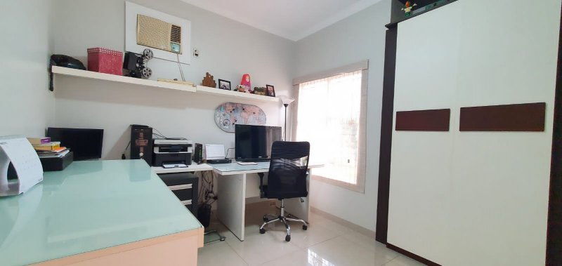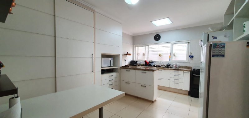 Térreo: 1 suíte (facilidade para idosos) com saída para varanda e lavanderia - sala dois ambientes pé direito duplo - escritório com ar condicionado - lavabo - charmosa cozinha rica em armários - despensa - lavanderia - 5 banheiros no total - aquecedor solar - portão eletrônico - 3 câmeras de segurança - garagem para 6 carros.