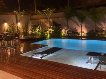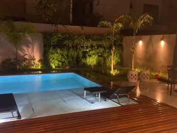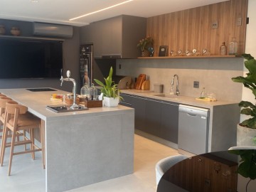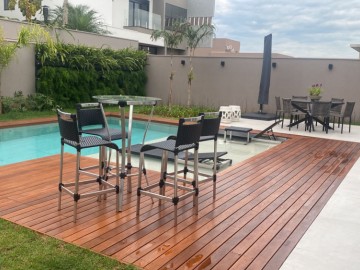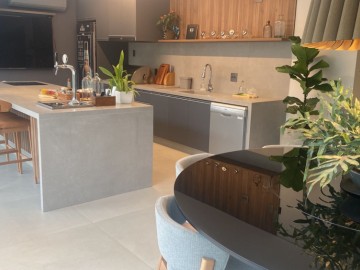 Diferenciais: Excelente iluminação natural. Bancadas em porcelanato. Jacuzzi 7 lugares. Piscina com aquecimento elétrico. Balcão gourmet. Armários na cozinha e lavanderia. Ar condicionado em toda a casa. Torneiras com misturadores Q/F. Válvula Hydra. Calhas embutidas. Paisagismo completo. 2 Fogões de indução. Fotovoltáica, Acabamento Premium, Caixa de água subterrânea para irrigação,