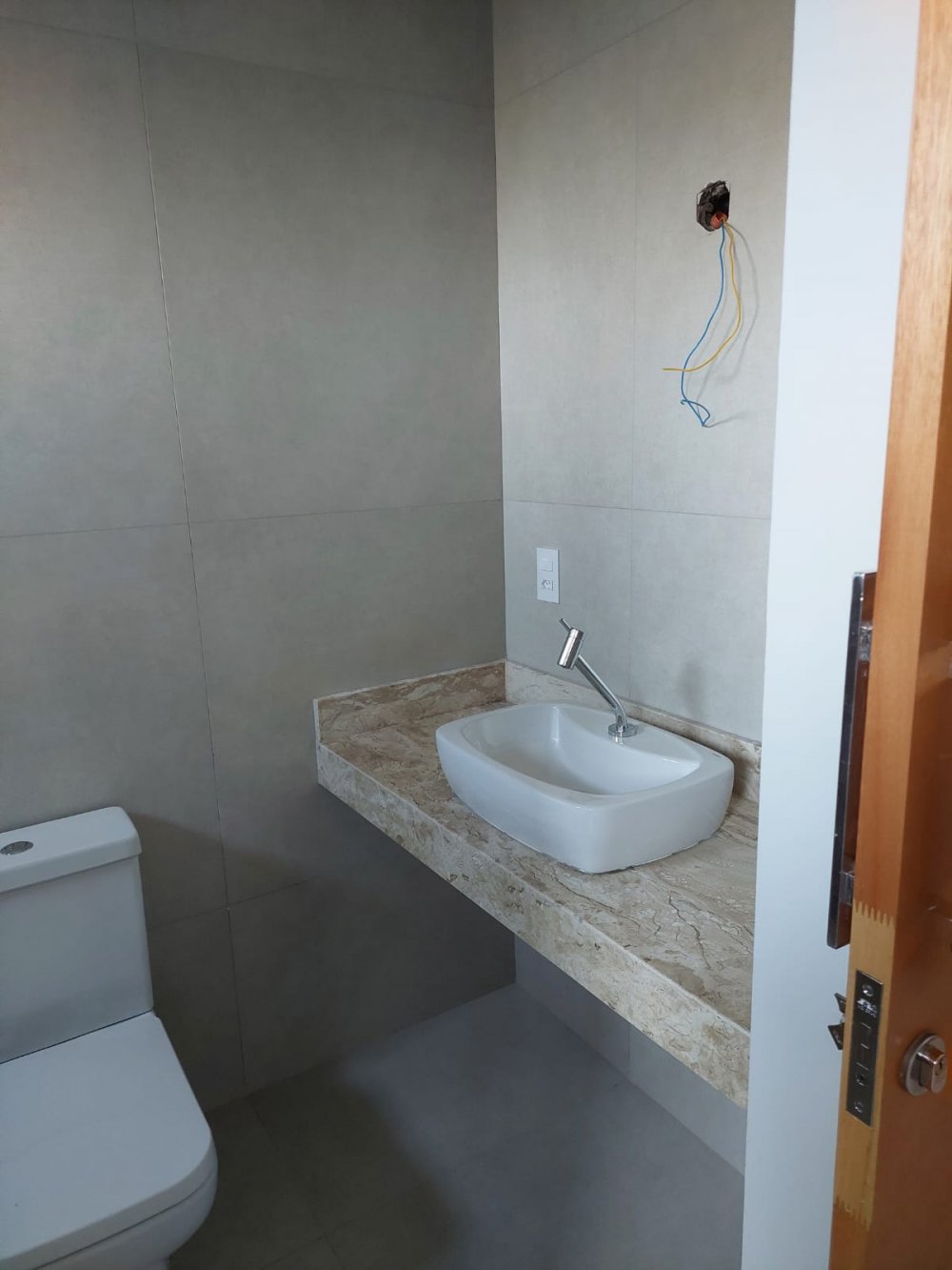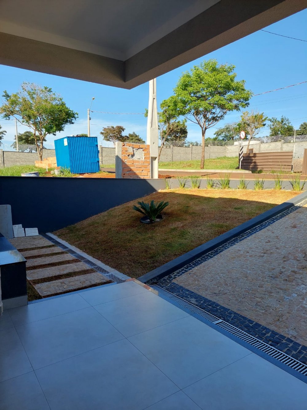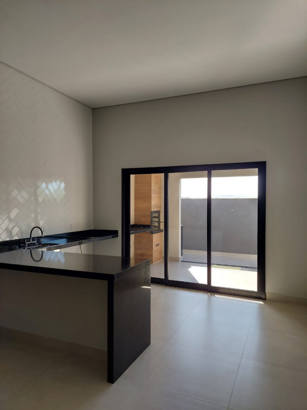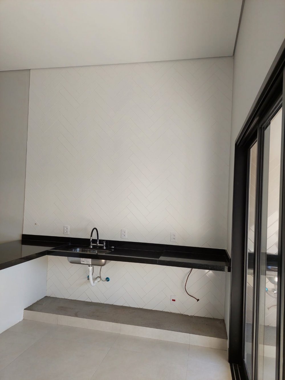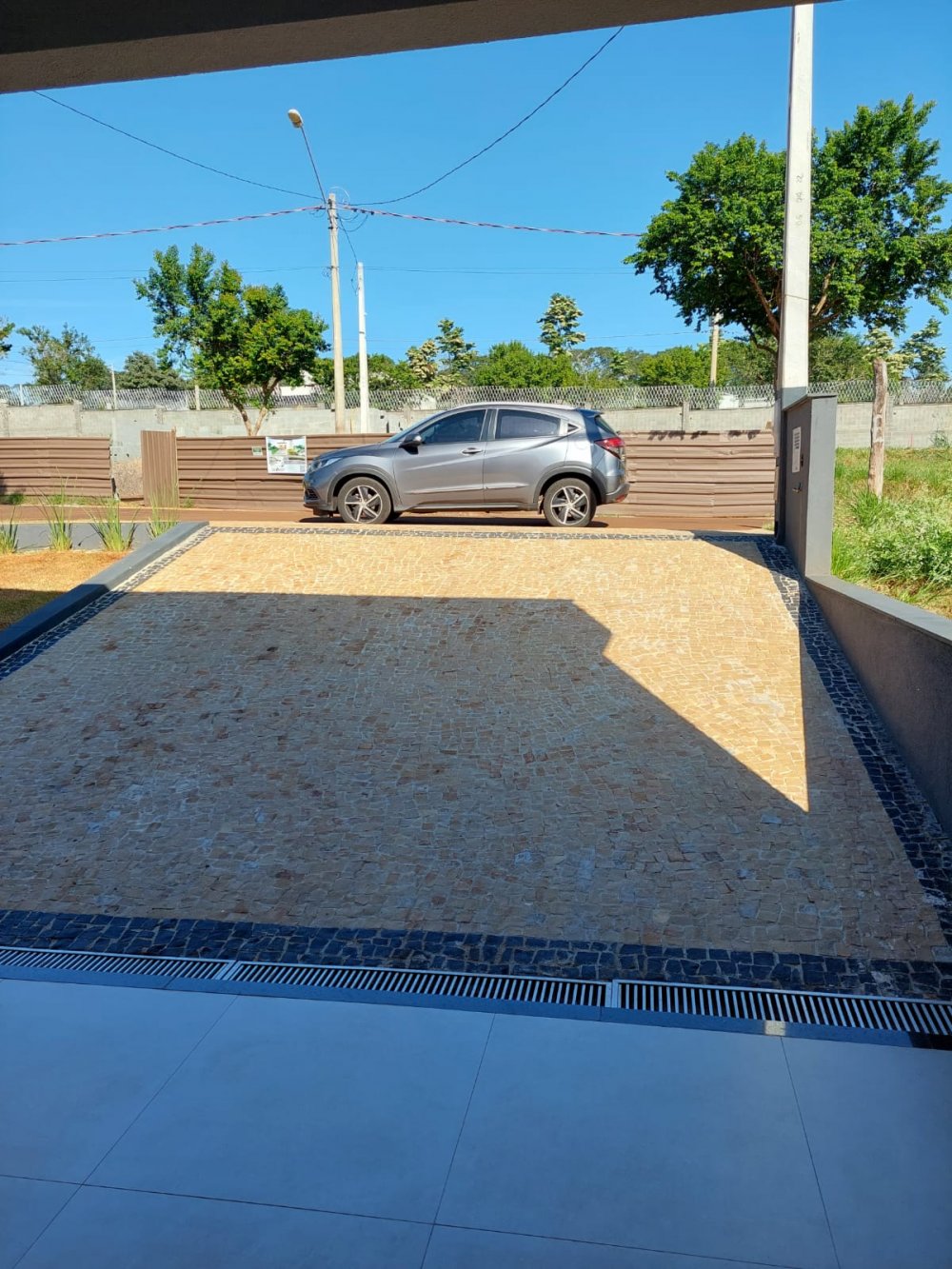 Sendo 3 suítes - hall de entrada - sala dois ambientes pé direto alto com cozinha integrada - lavabo - área gourmet com chuveirão - roupeiro - garagem coberta para 2 carros.