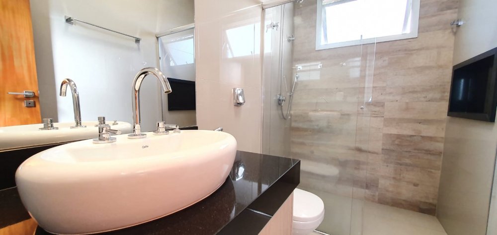 Piso superior: 4 suítes com armários e ar condicionado, sendo 2 com closet. Sala íntima com ar condicionado.