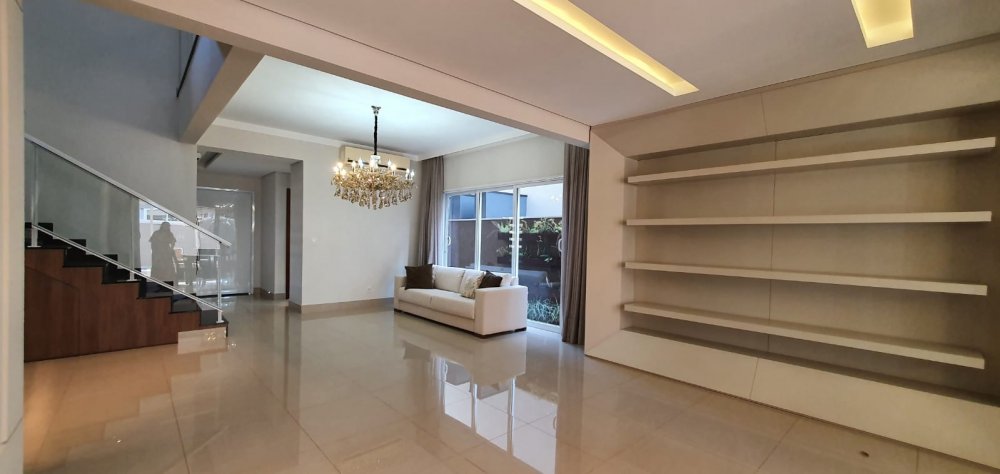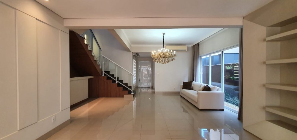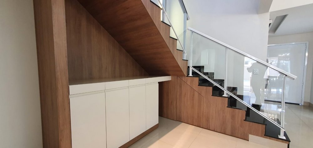 Piso térreo: 4 vagas na garagem, sendo 2 cobertos. Lavabo, escritório com ar condicionado, sala 2 ambientes com ar condicionado, cozinha interna planejada com despensa. Área de serviço.