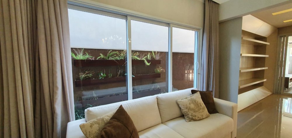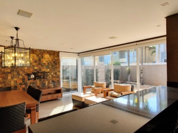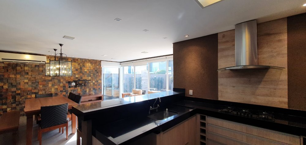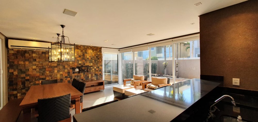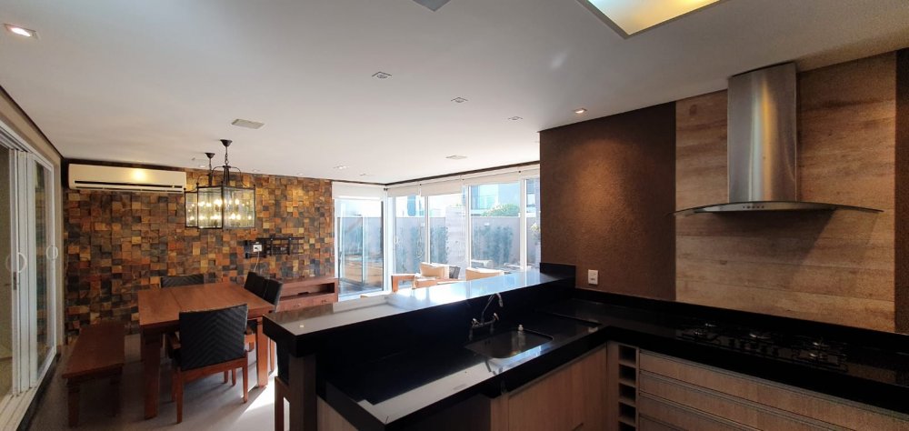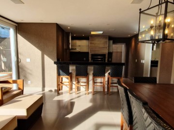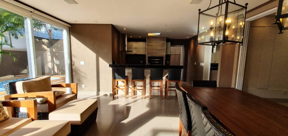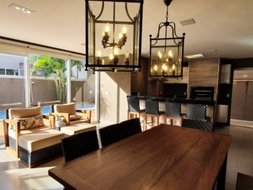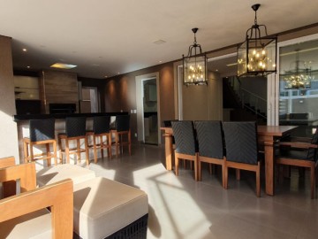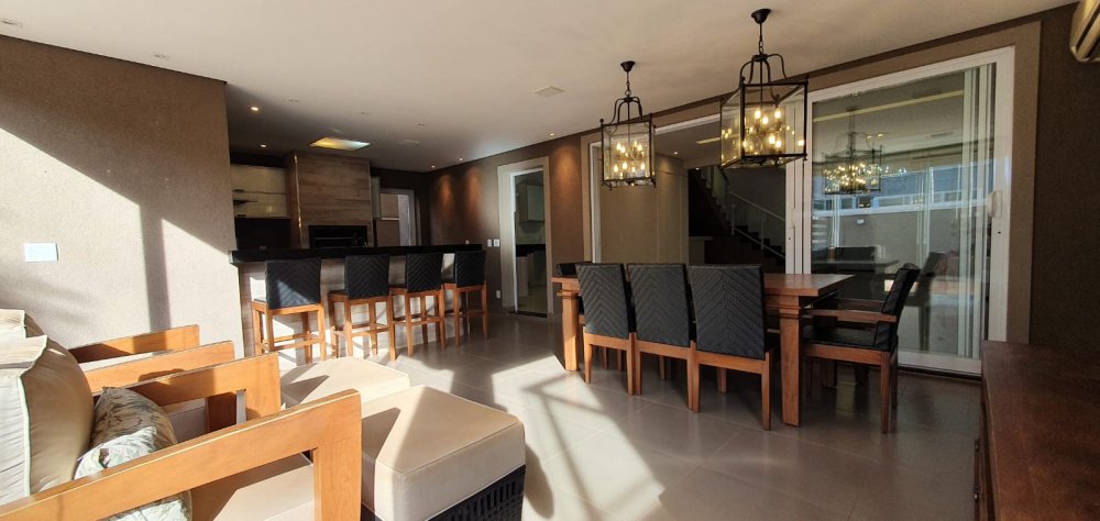 Diferenciais: Semi mobiliada. 8 aparelhos split. Piscina aquecida. Sistema de som embutido com 2 zonas independentes (varanda / piscina). Aquecimento solar abastecendo os banheiros e cozinha. mesa com 5 cadeiras e 1 banco, conjuntos de poltronas, banquetas, cooktops e coifa, cortinas/persianas.