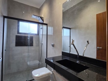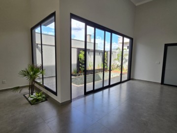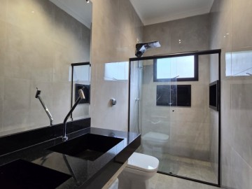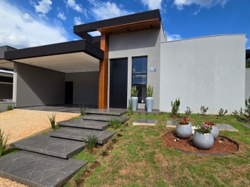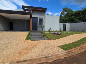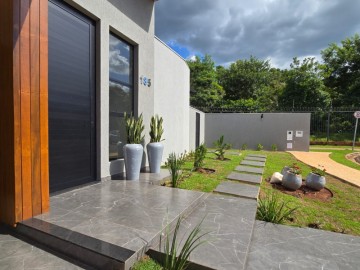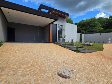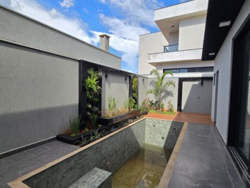 4 vagas na garagem, sendo 2 cobertas. Lavabo. Sala 2 ambientes com pé direito elevado de 4m. Ampla Cozinha gourmet. Área de serviço. Ropeiro no corredor. 3 suítes com portas para o jardim lateral, sendo a master com pia de cuba dupla. Na área externa: Despensa/Depósito. Vestiário completo. Piscina com spa e ampla área de sol e jardim. Entregue com materiais premium, armários e fotovoltaica.