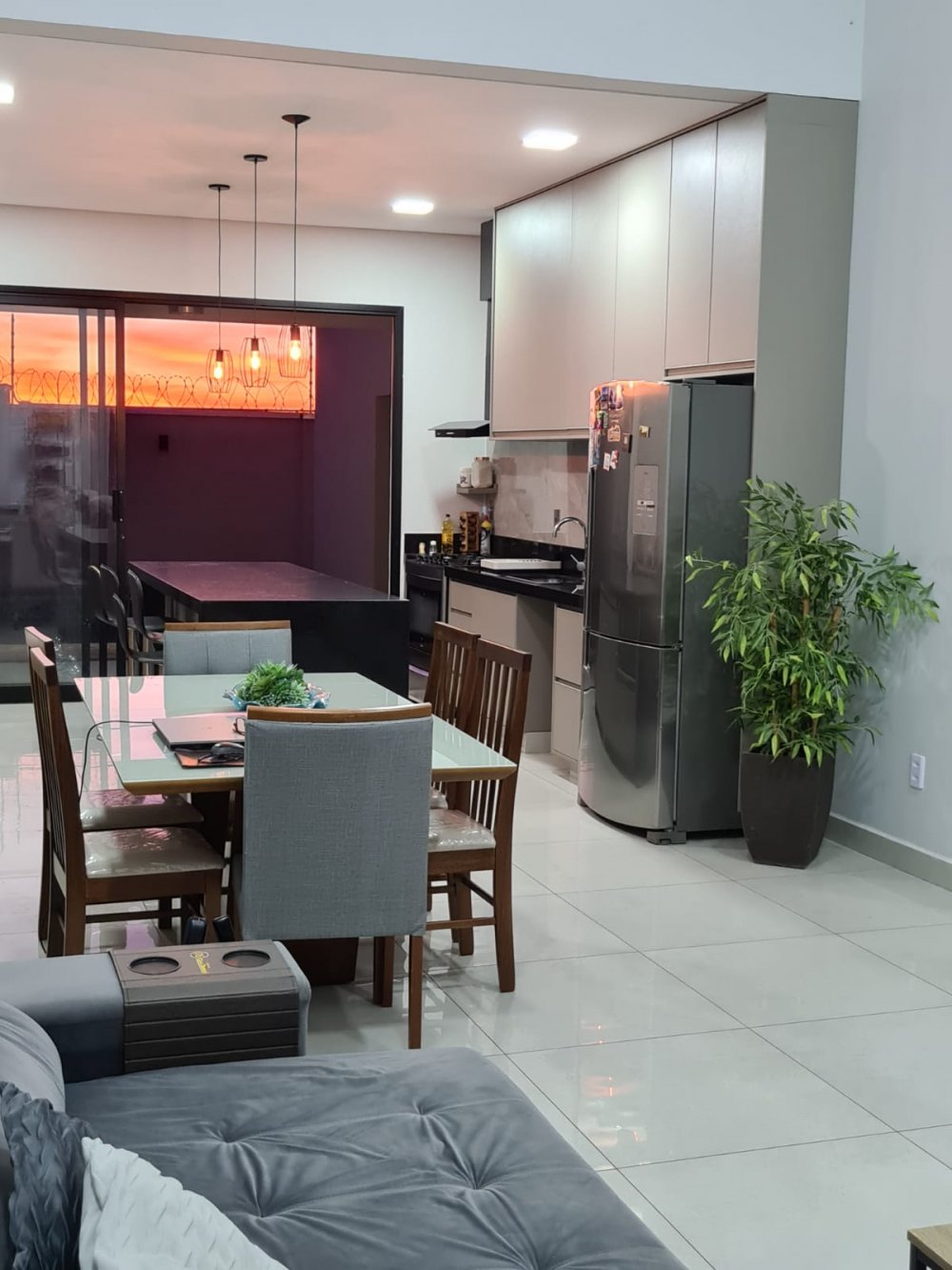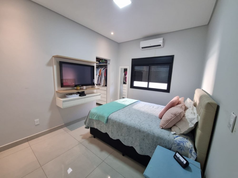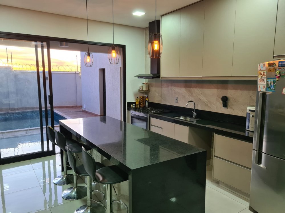 Com 3 dormitórios, sendo 1 suíte master com closet Sr. e Sra., pia dupla, banheira com cromoterapia conjugada com área molhada que evita molhar a área seca - sala dois ambientes pé direito duplo - lavabo - escritório reversível para outro dormitório - cozinha planejada - rica em armários - lavanderia - área de lazer com churrasqueira e piscina inteligente com hidromassagem, iluminação recreativa, preparada para aquecimento, automatizada e controlada por interruptor, controle remoto ou assistente de voz - garagem para 4 carros.