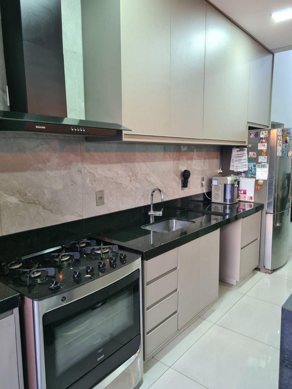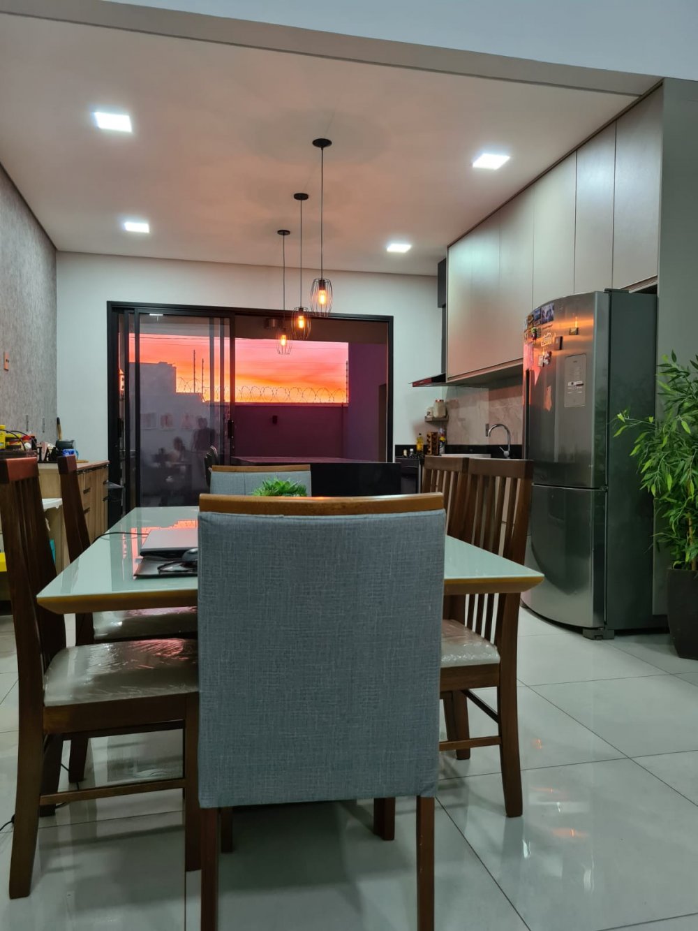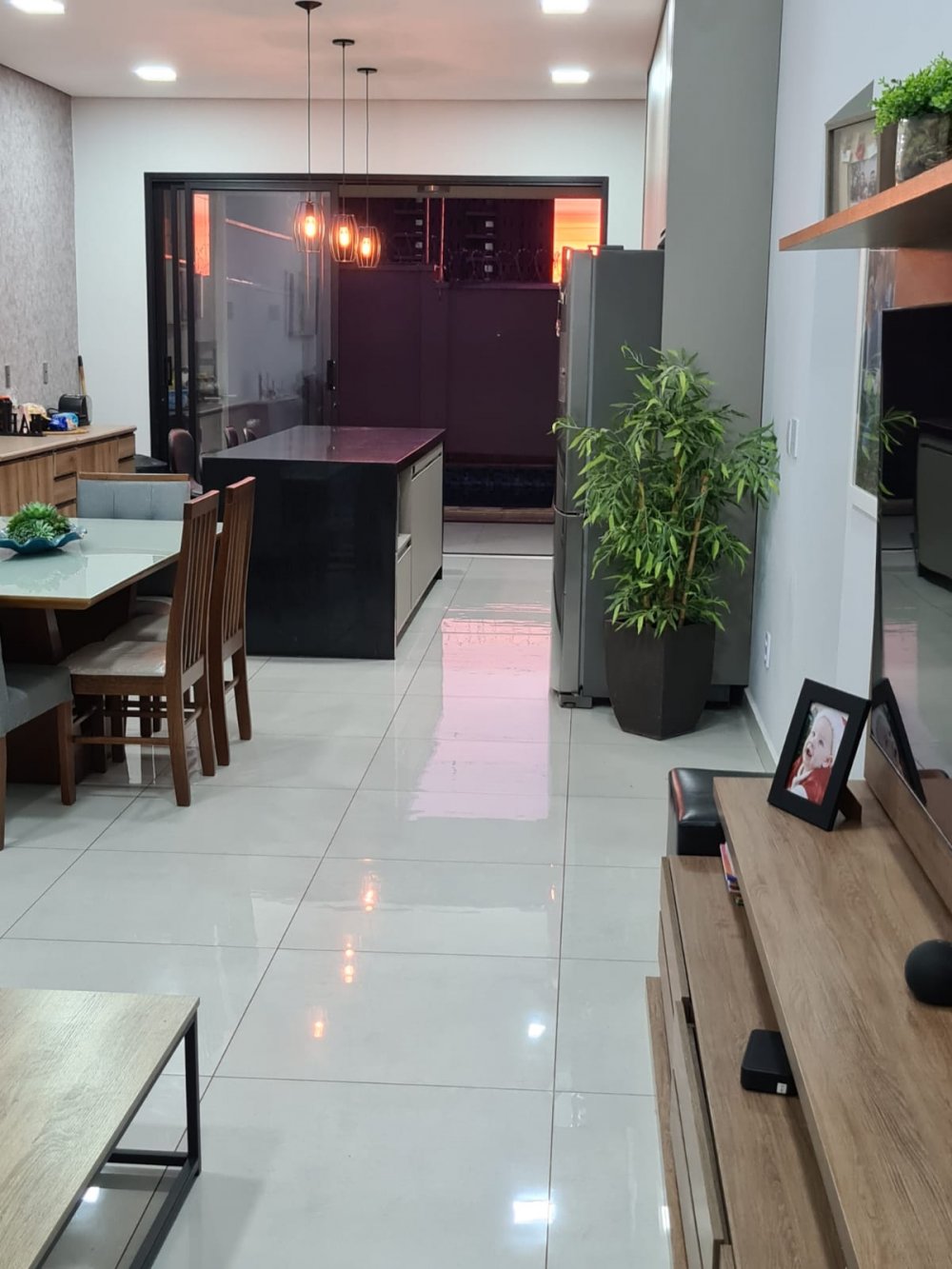 Com 3 dormitórios, sendo 1 suíte master com closet Sr. e Sra., pia dupla, banheira com cromoterapia conjugada com área molhada que evita molhar a área seca - sala dois ambientes pé direito duplo - lavabo - escritório reversível para outro dormitório - cozinha planejada - rica em armários - lavanderia - área de lazer com churrasqueira e piscina inteligente com hidromassagem, iluminação recreativa, preparada para aquecimento, automatizada e controlada por interruptor, controle remoto ou assistente de voz - garagem para 4 carros.