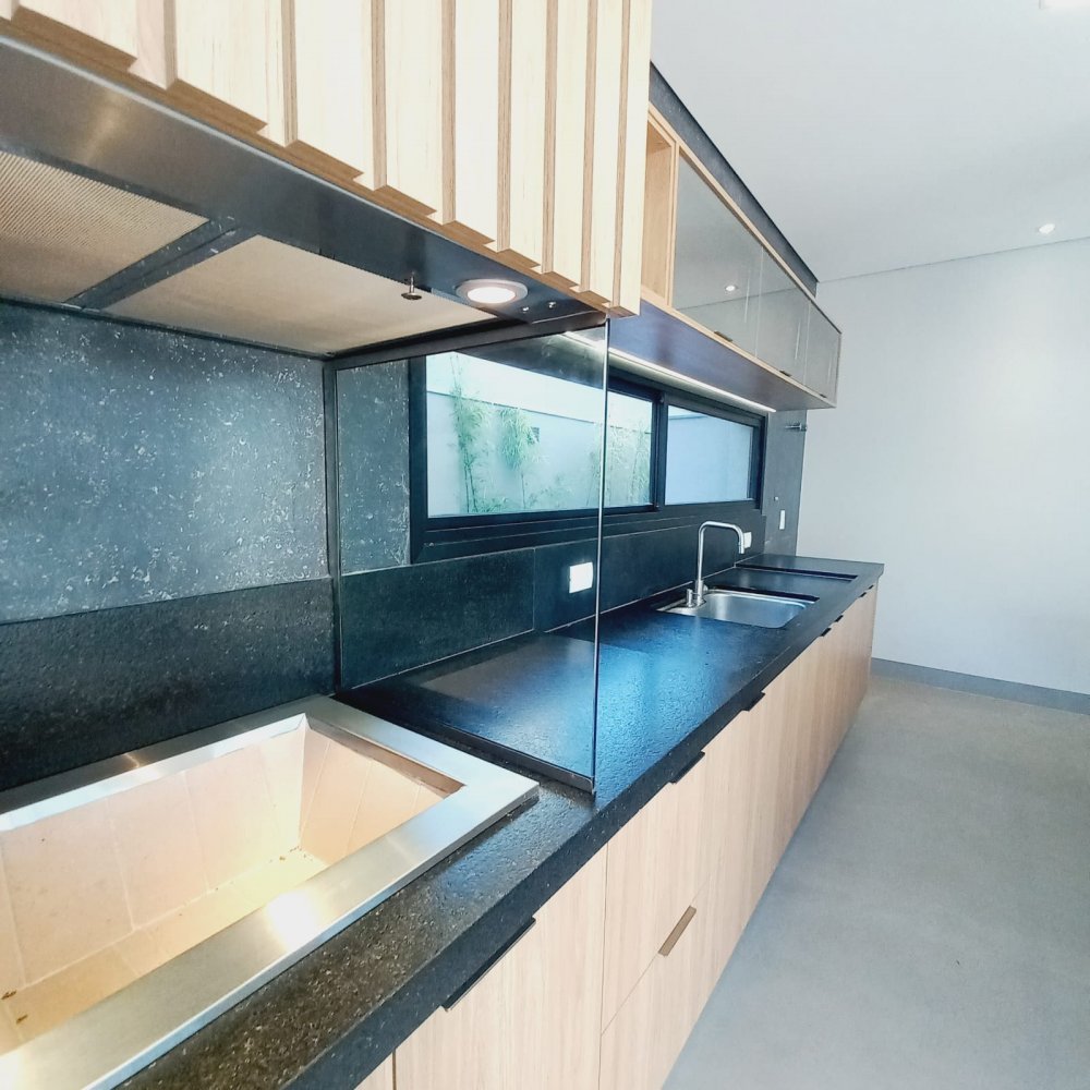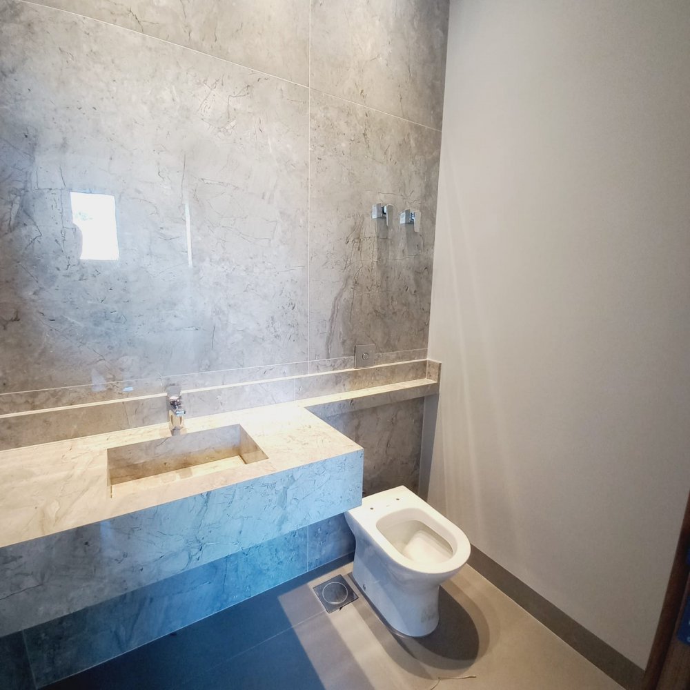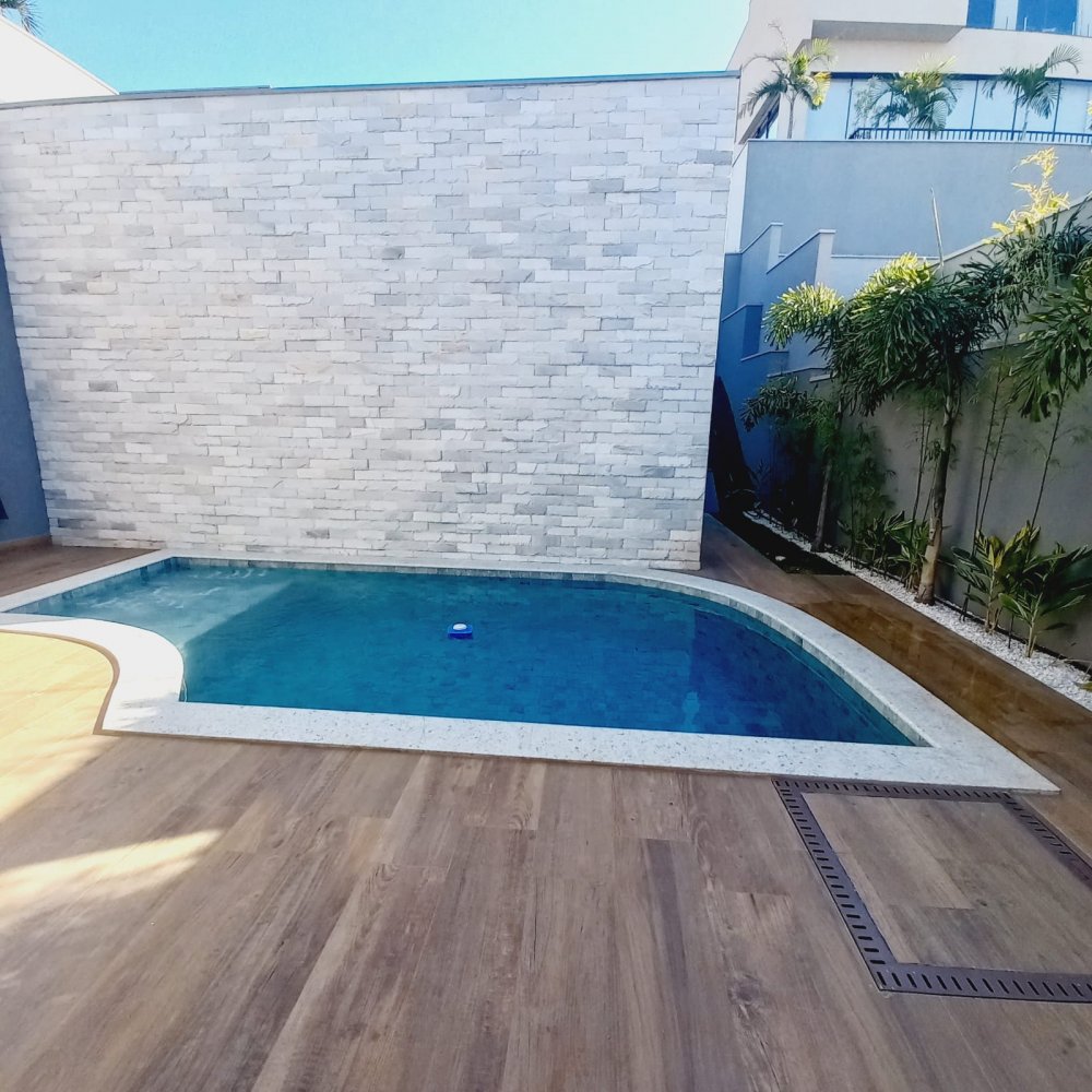 Área construída de 274 m², terreno de 545m², 6 vagas de garagem, sendo 03 cobertas, suíte completa (que pode ser utilizada como escritório), lavabo, amplo living para 02 ambientes com pé direito elevado, integrado à área de churrasco. Cozinha separada e área de serviço.Alto padrão de acabamento, porcelanato em grandes formatos, piscina revestida de pastilha, granito preto São Gabriel escovado.