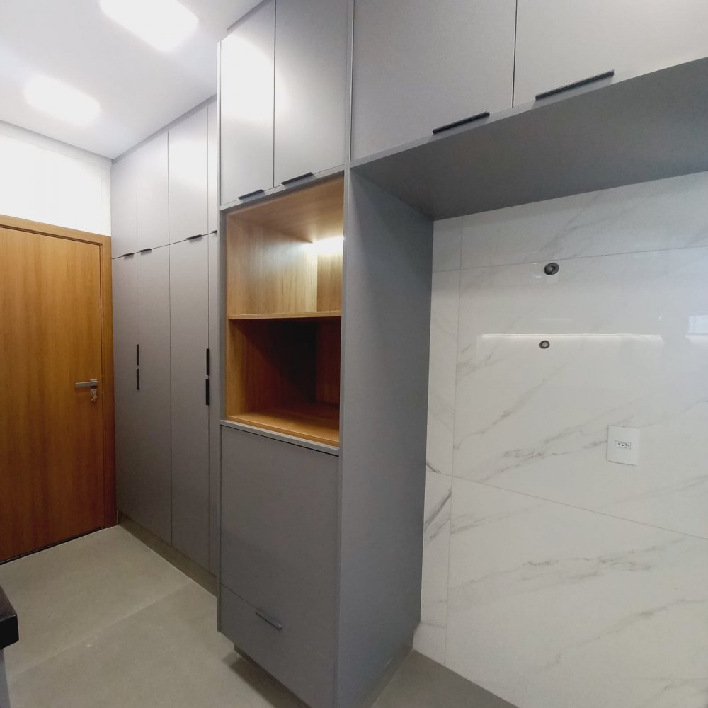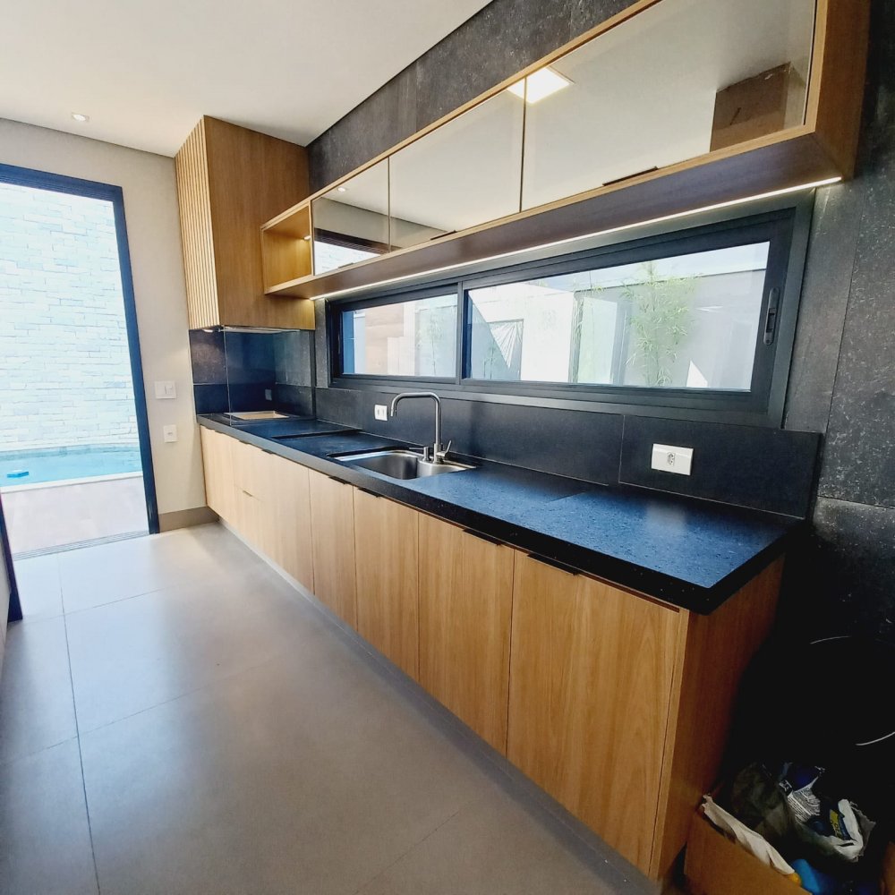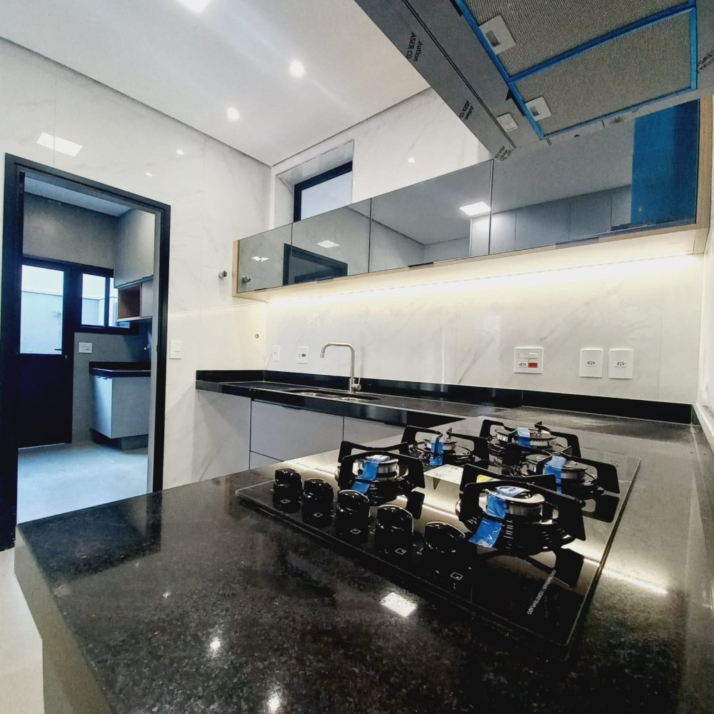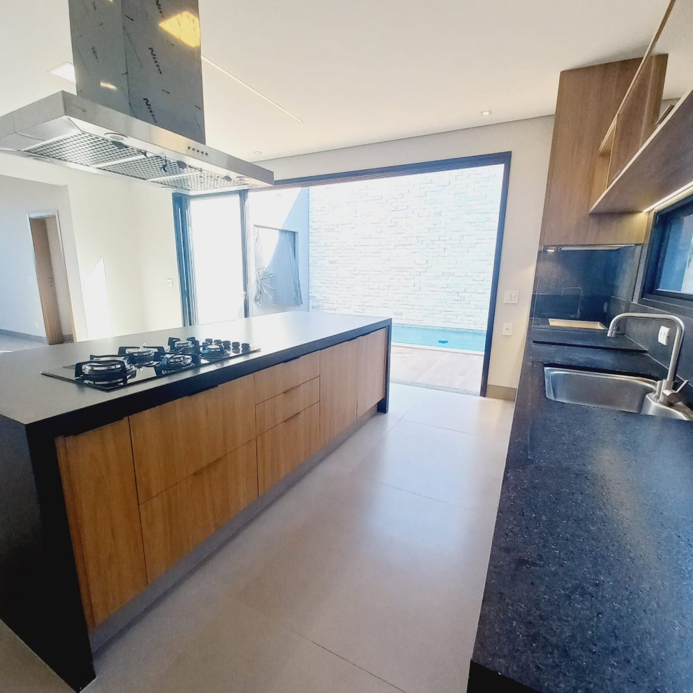 Área construída de 274 m², terreno de 545m², 6 vagas de garagem, sendo 03 cobertas, suíte completa (que pode ser utilizada como escritório), lavabo, amplo living para 02 ambientes com pé direito elevado, integrado à área de churrasco. Cozinha separada e área de serviço.Alto padrão de acabamento, porcelanato em grandes formatos, piscina revestida de pastilha, granito preto São Gabriel escovado.