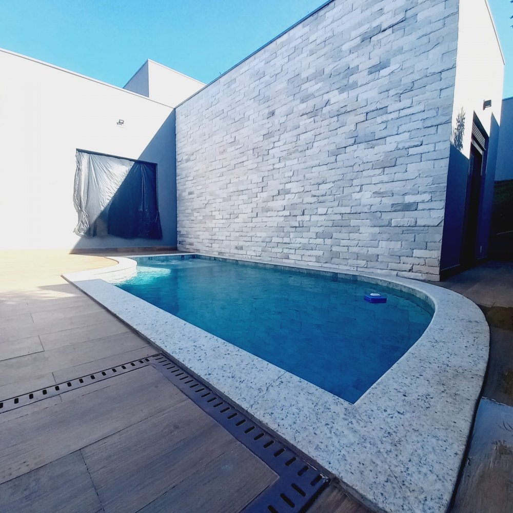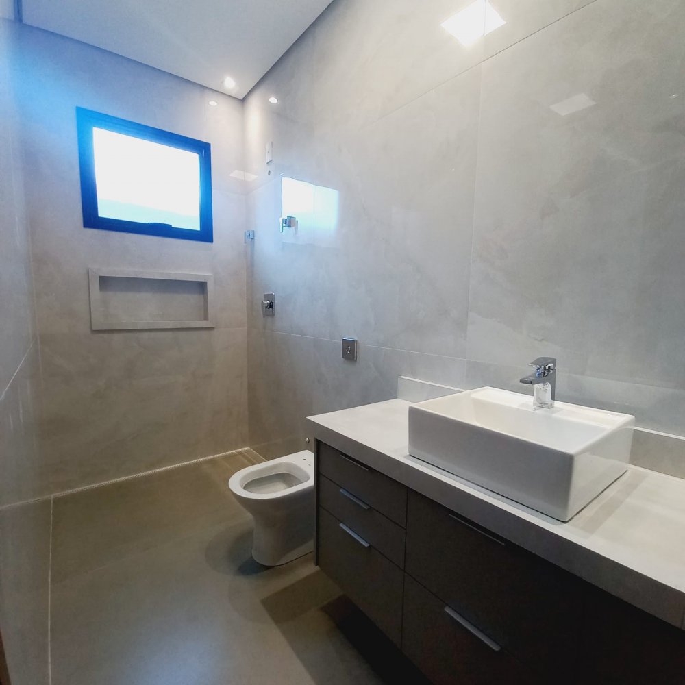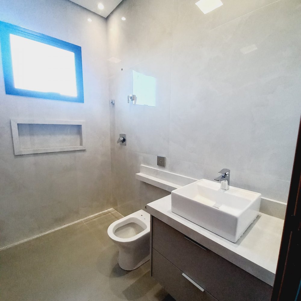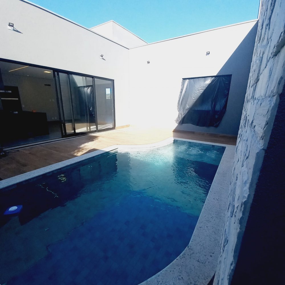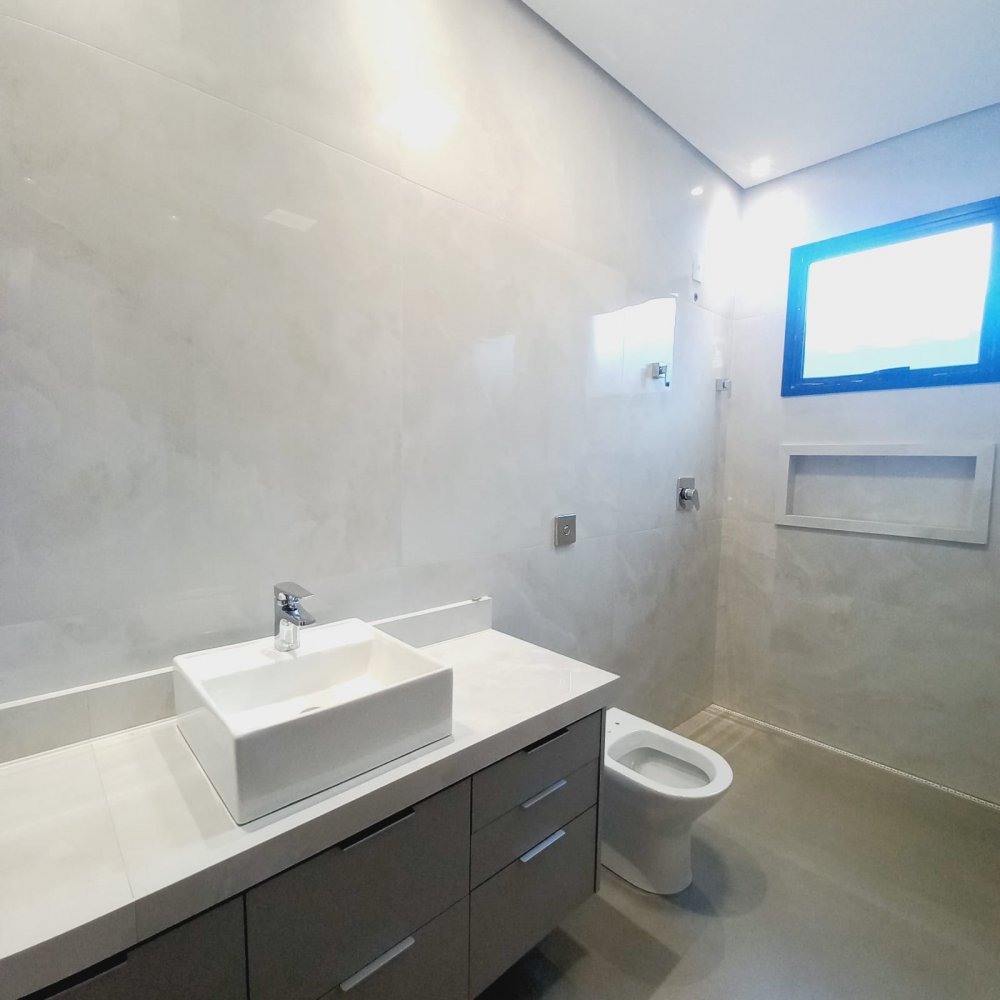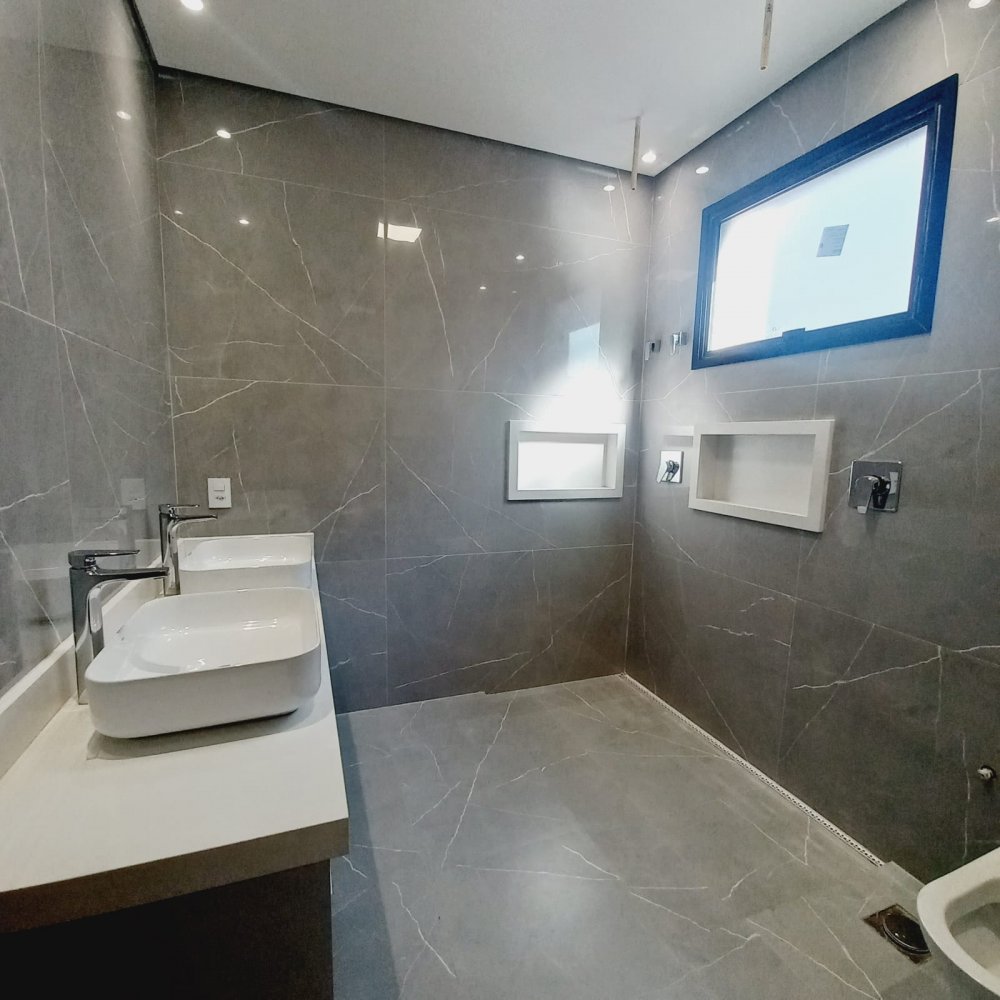 Piscina com hidro e iluminação, chuveirão, vestiário completo e um armário de depósito. Na área íntima mais 03 espaçosas suítes, todas com janelas com persianas automatizadas, sendo a máster com closet e suíte com chuveiros duplos de teto , pia com cubas duplas e porta balcão.