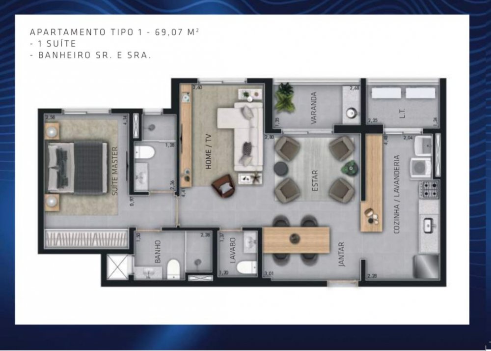 - Área Total: 69,07 m² (R$ 7.219/m²)
