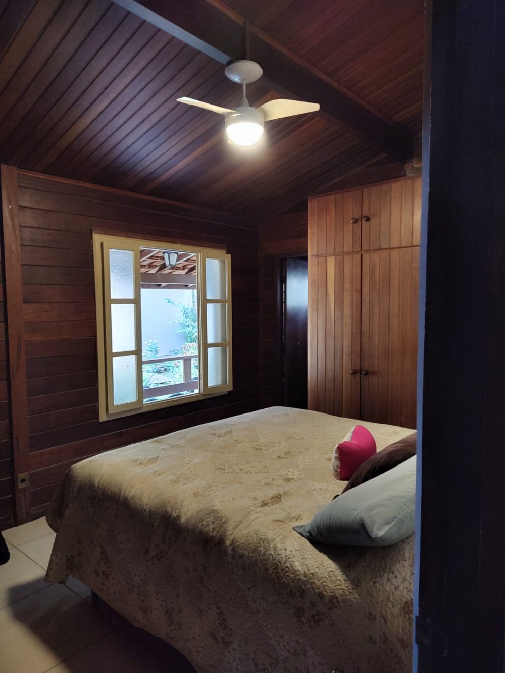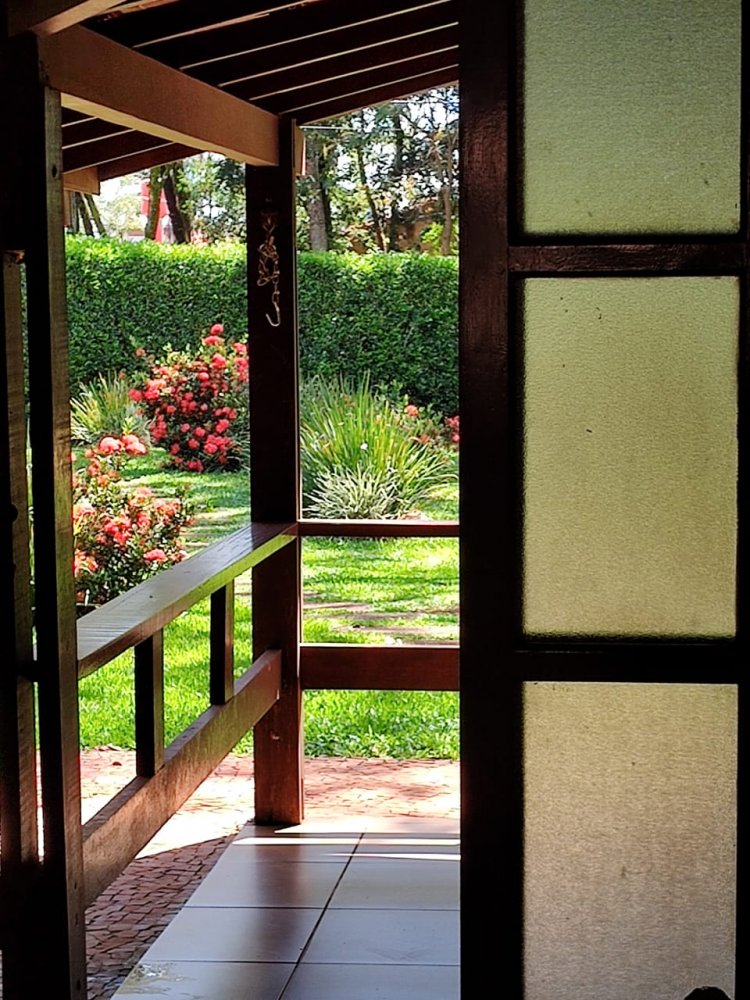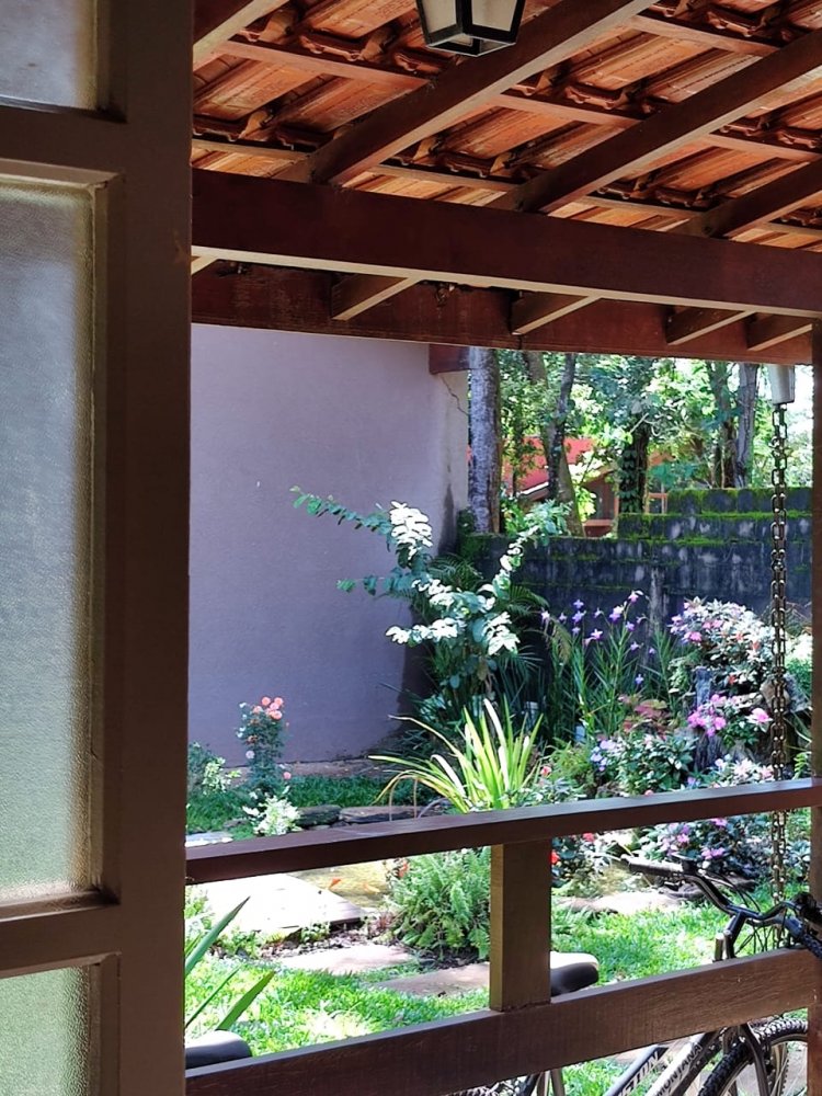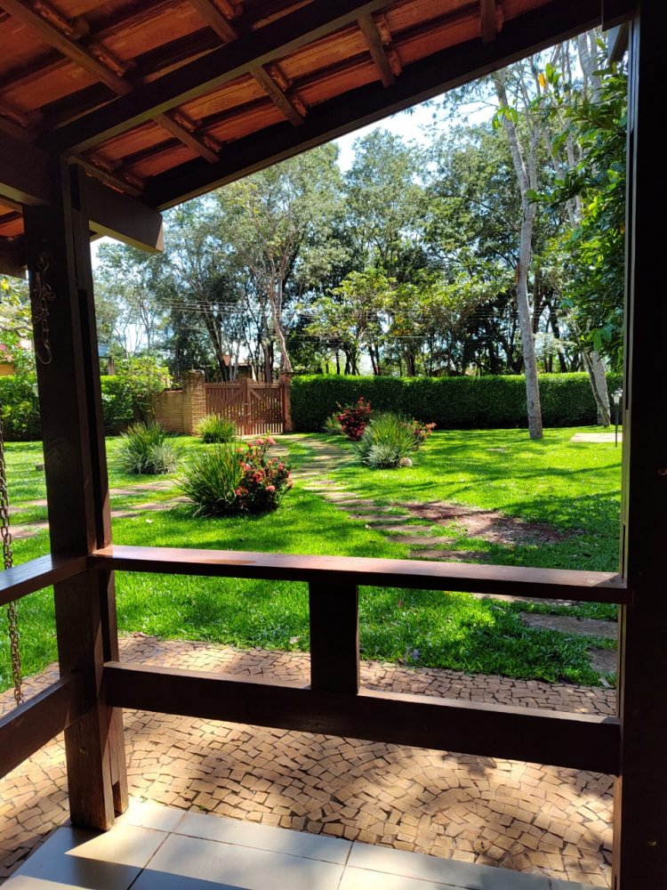 Lago ornamental para peixes com cascata, pomar com várias árvores frutíferas produzindo: jabuticaba, manga, amora, abil, limão, caju, pindaíba, goiaba, atemóia e macadâmia. Um lindo jardim gramado e muito bem cuidado.