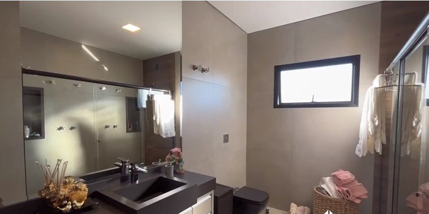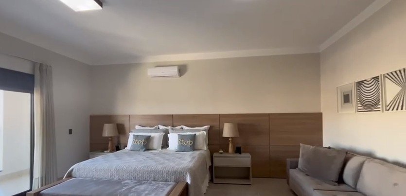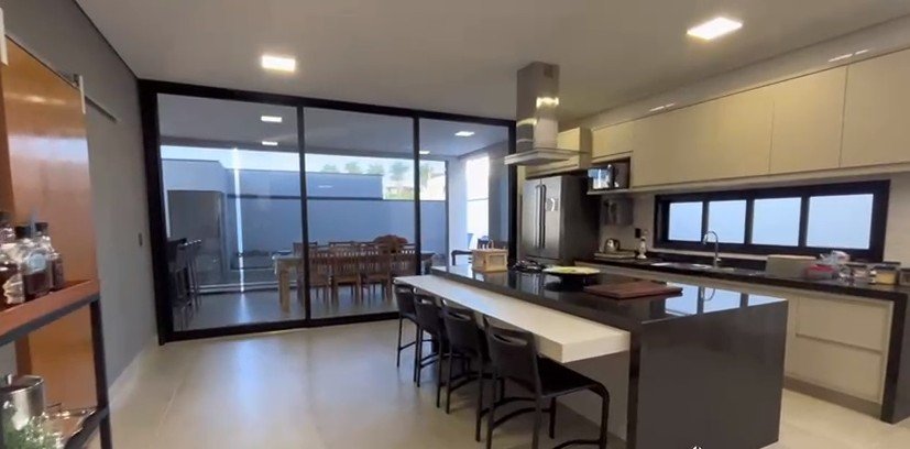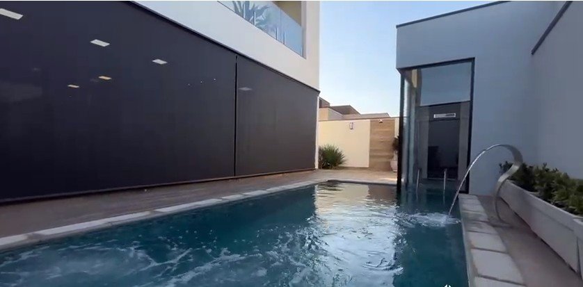 Sendo 3 suítes a master bem ampla com mais 50 m² - sala para 3 ambientes - lavabo - escritório reversível para outra suíte - cozinha completa com armários - lavanderia - área de lazer com piscina, sauna e banheiro externo - garagem para 2 carros.