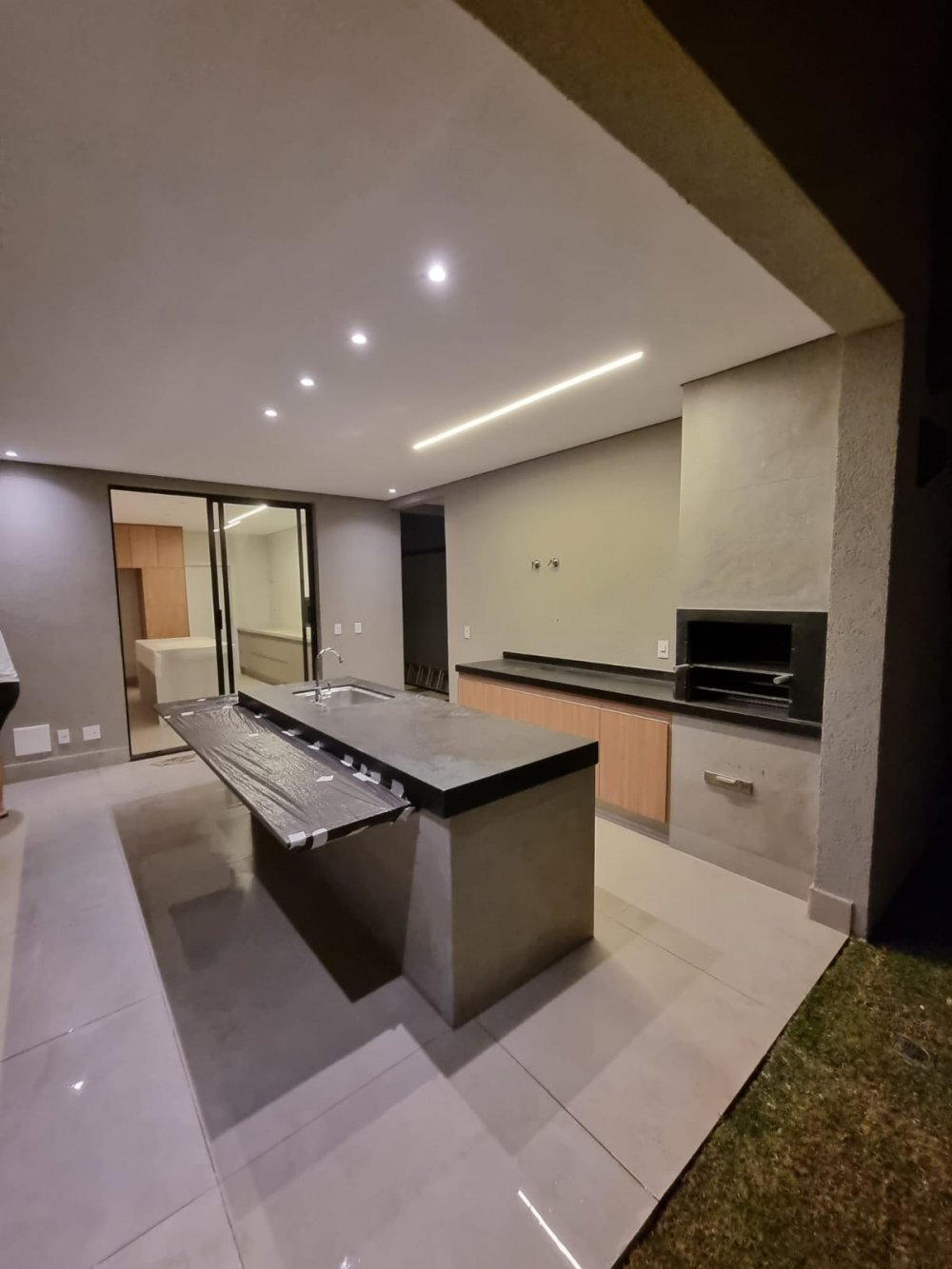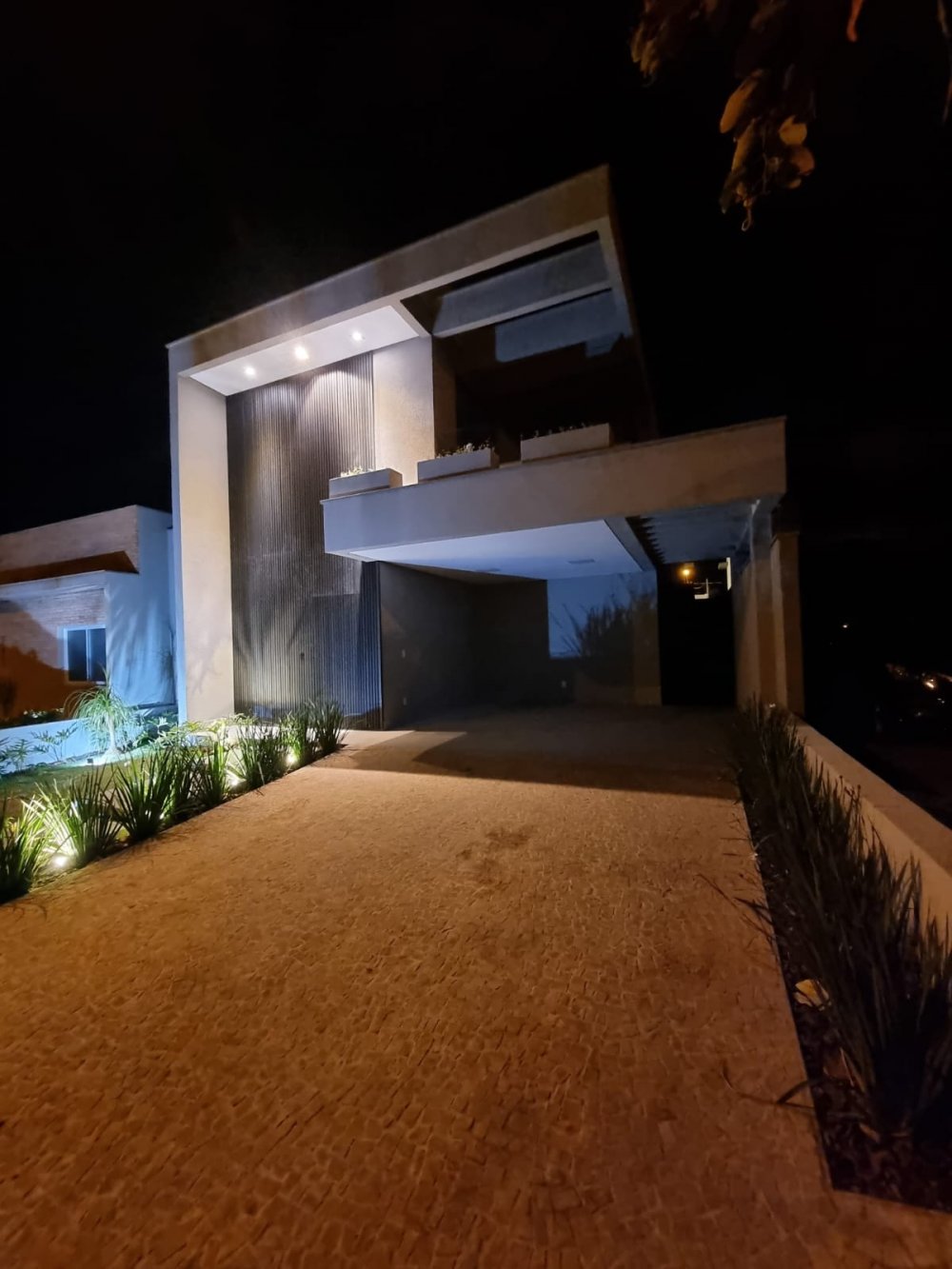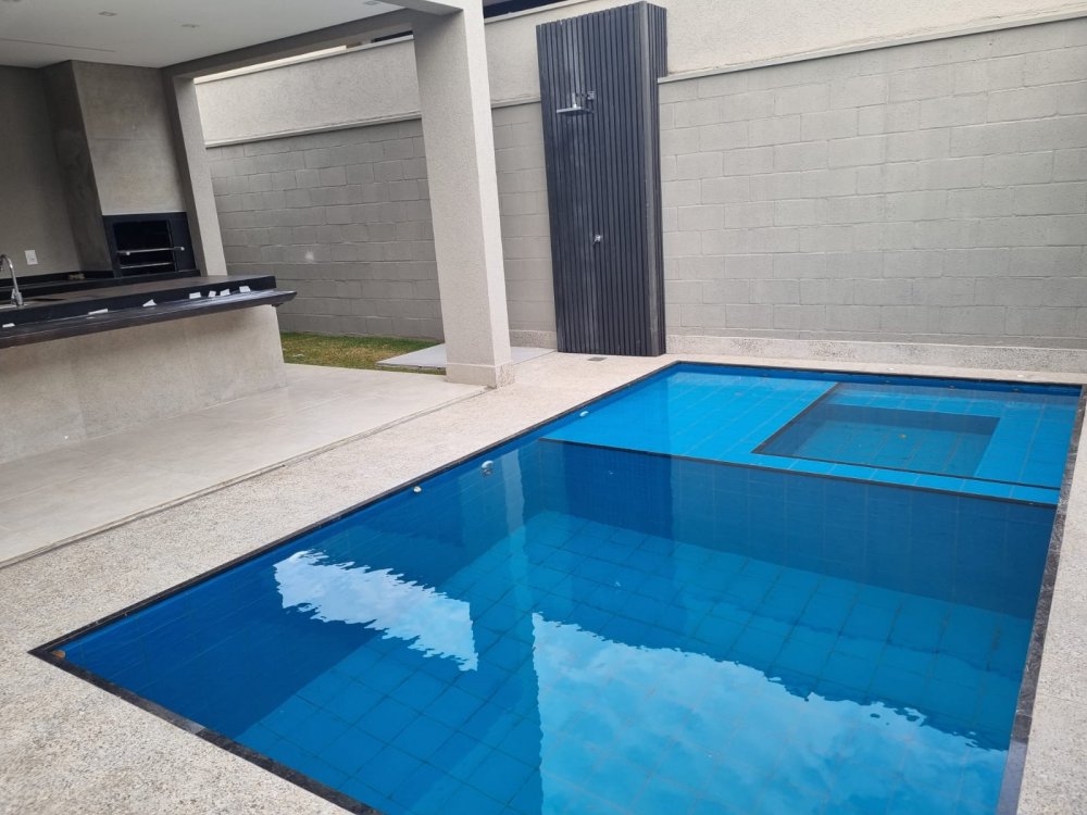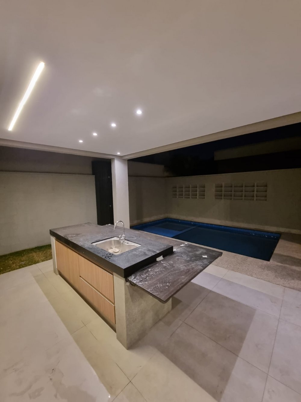 Térreo: 1 suíte reversível para escritório - lavabo - sala dois ambientes - cozinha com armários e ilha - área gourmet com ilha - lavanderia - piscina - garagem para 2 carros.