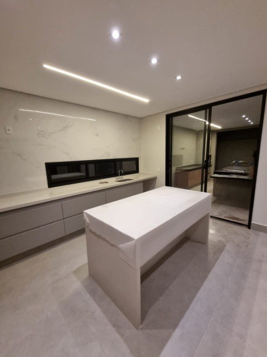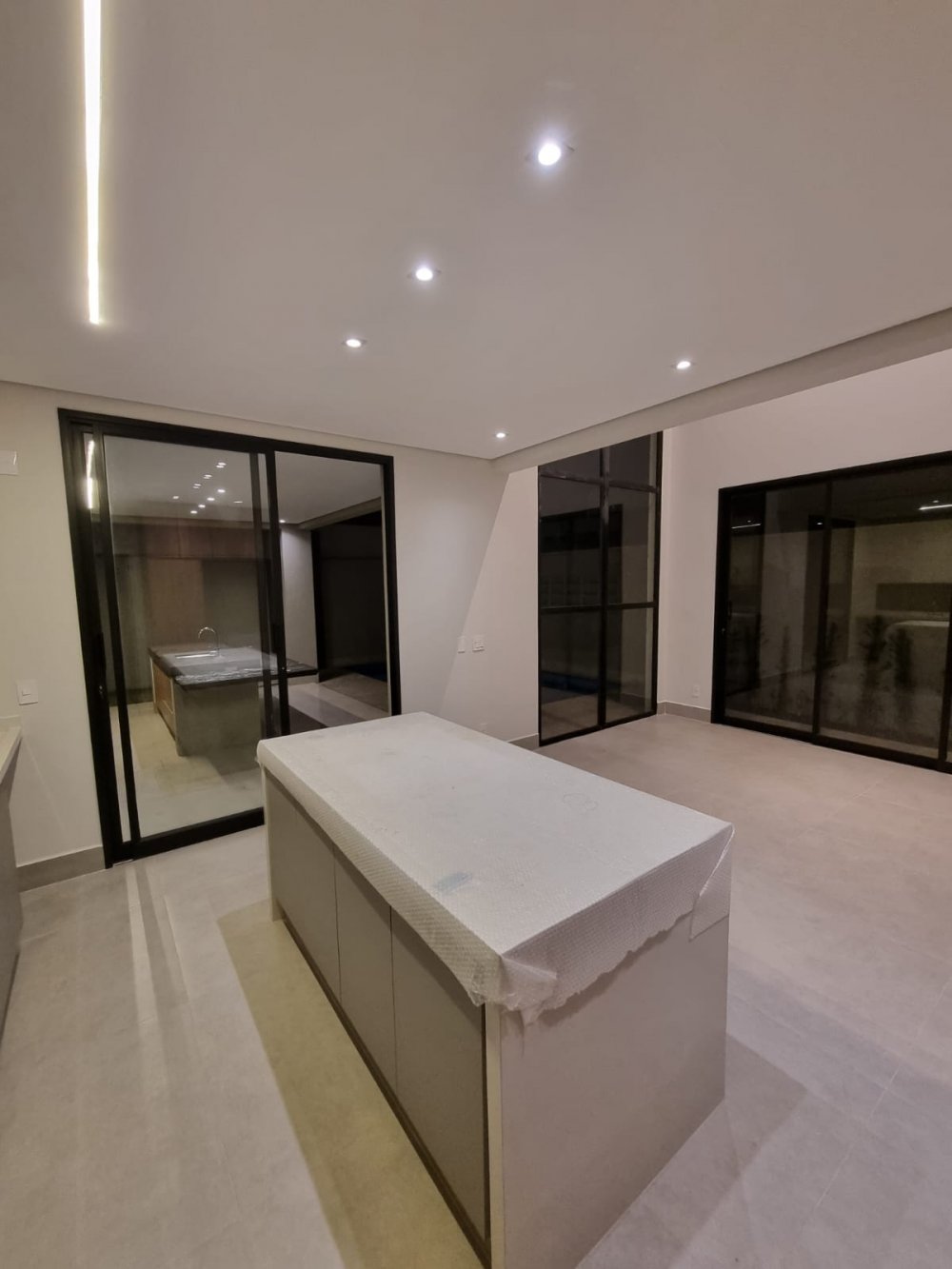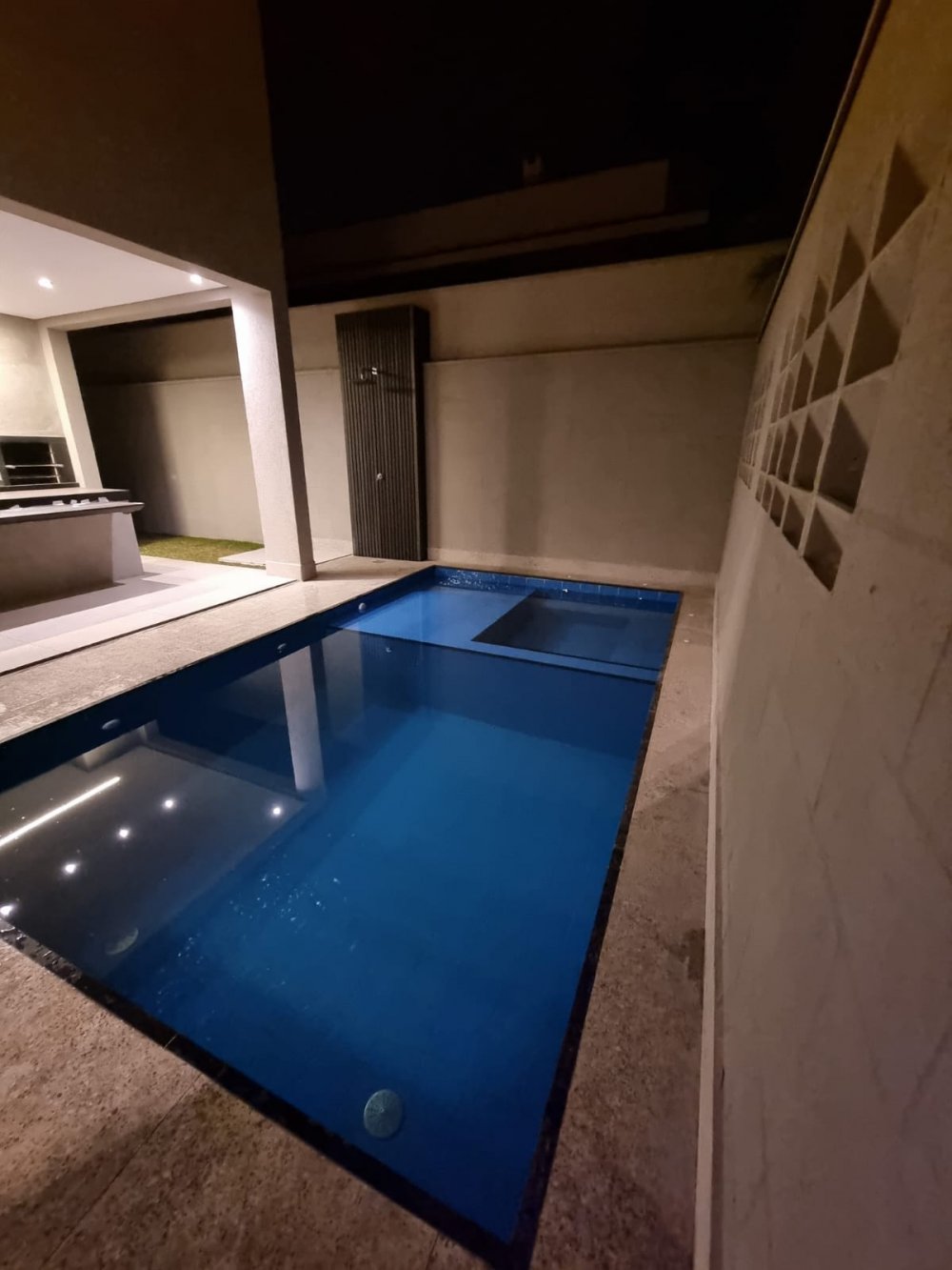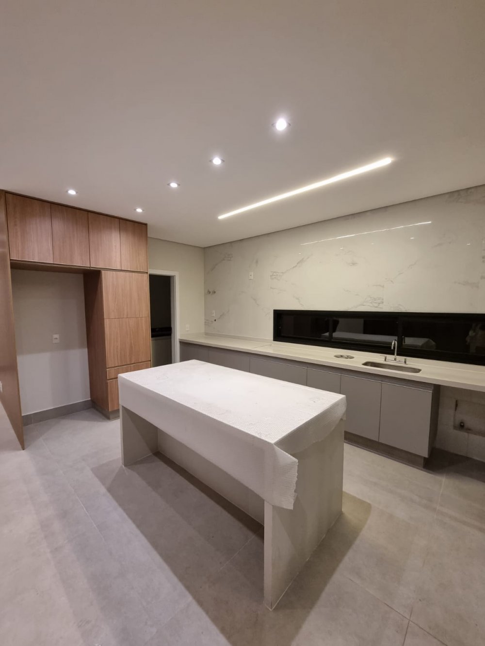 Térreo: 1 suíte reversível para escritório - lavabo - sala dois ambientes - cozinha com armários e ilha - área gourmet com ilha - lavanderia - piscina - garagem para 2 carros.