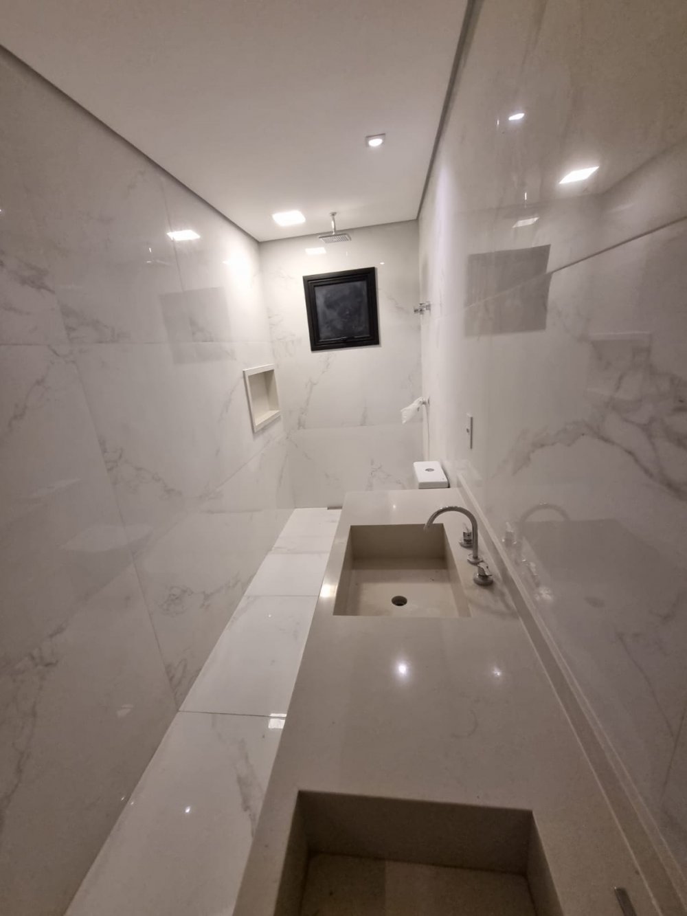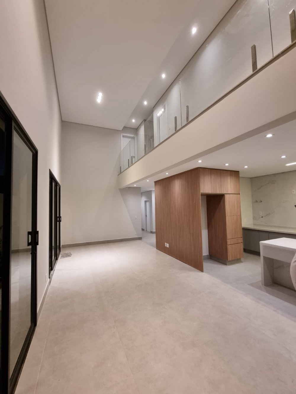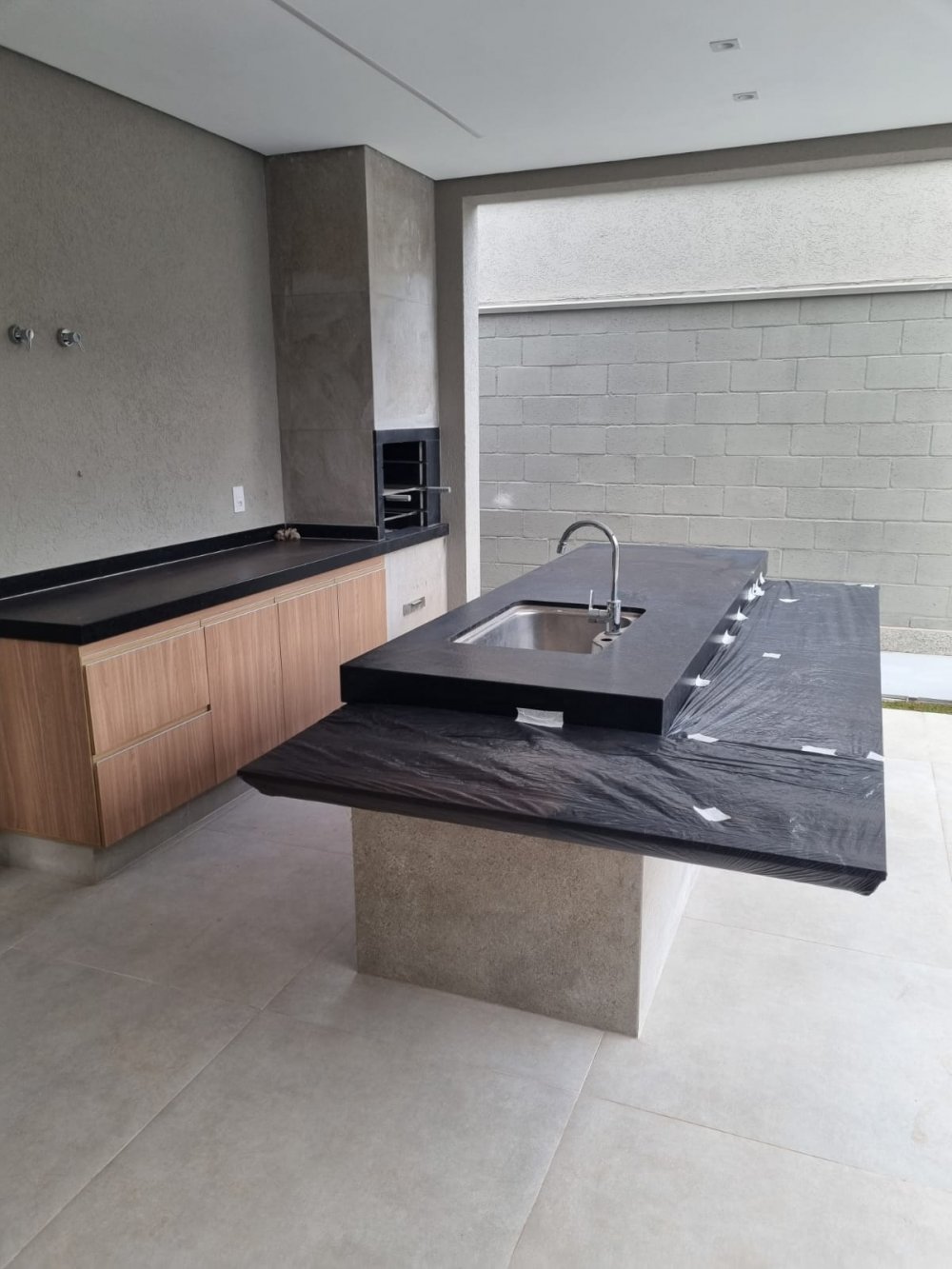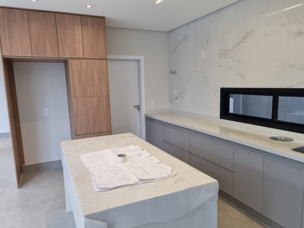 Térreo: 1 suíte reversível para escritório - lavabo - sala dois ambientes - cozinha com armários e ilha - área gourmet com ilha - lavanderia - piscina - garagem para 2 carros.
