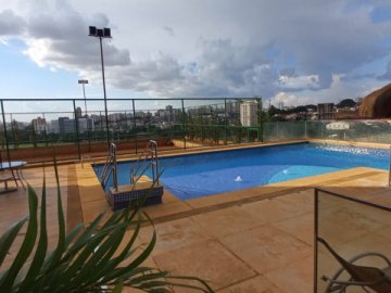 Condomínio com área de lazer completa, portaria 24 horas, piscina, quadra poliesportiva, quadra de tênis, playground.