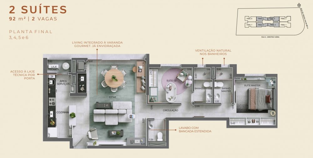 - Área Privativa: 92,26 m²