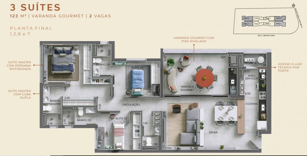 - Área Total: 122,74 m² (R$ 7.755/m²)