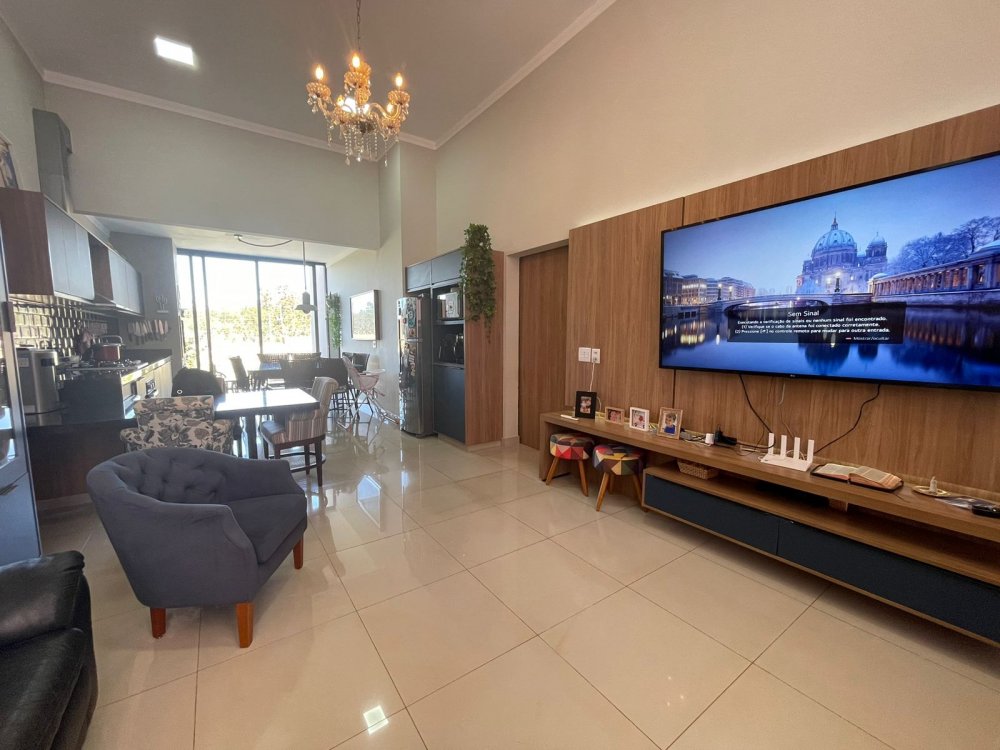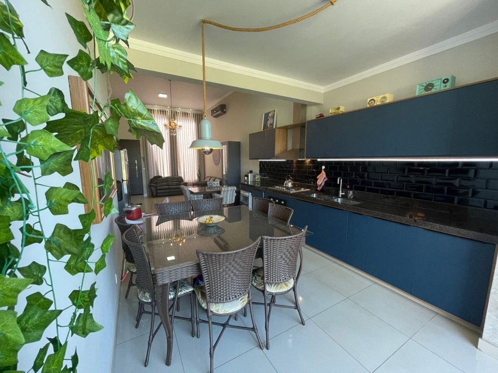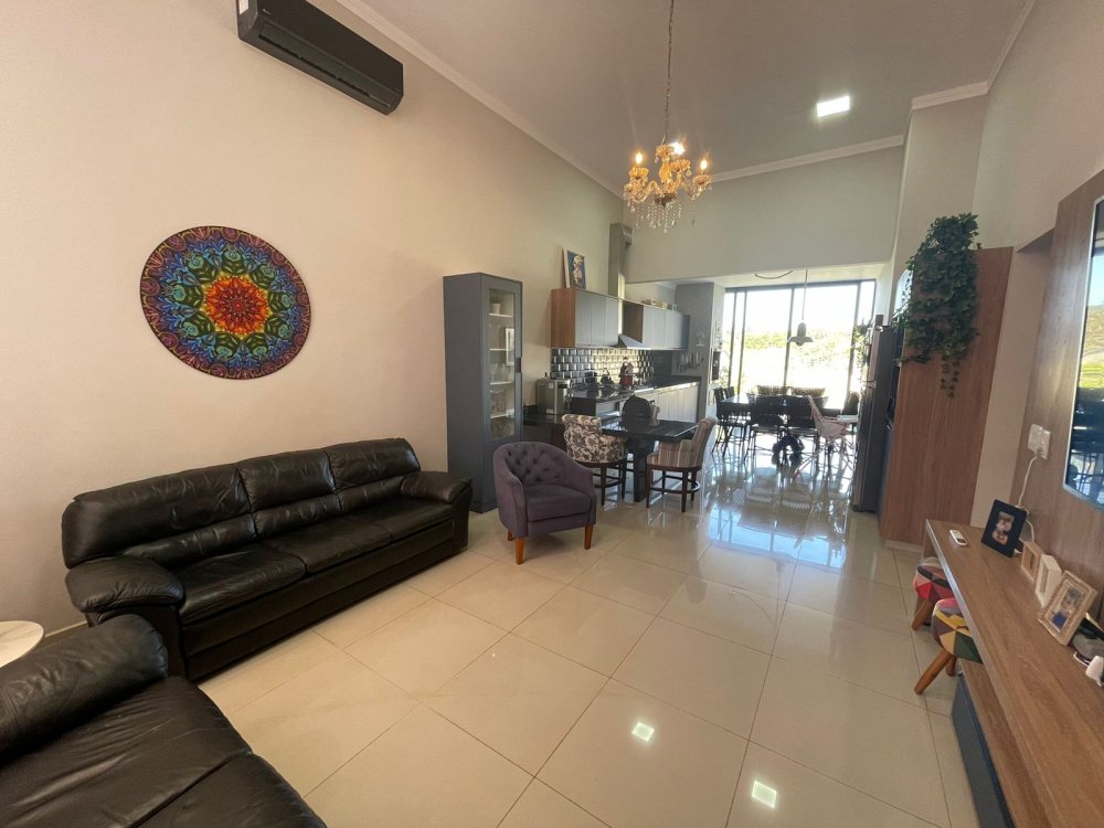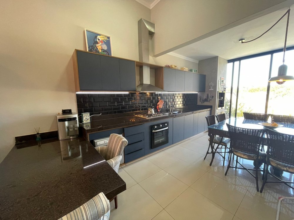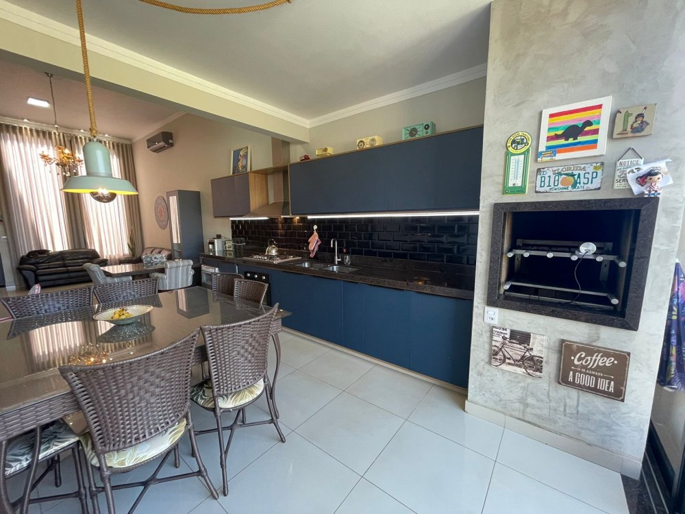 Ampla sala 2 ambientes com pé direito alto, integrada à cozinha gourmet com churrasqueira com exaustor e pontos para balcão e chopeira, lavabo, piscina aquecida com cascata, quintal com paisagismo e area de serviço. Na área intima, 3 amplos dormitórios, sendo 1 suíte master e banheiro social. Casa completa em projeto de iluminação, climatização e armários planejados CORRAGIO. Aquecimento solar com boiller de 500 lts. Sistema fotovoltaico com geração de R$ 600,00 de energia. Apenas 2 anos de construção. 6 vagas de garagem, sendo 3 cobertas.