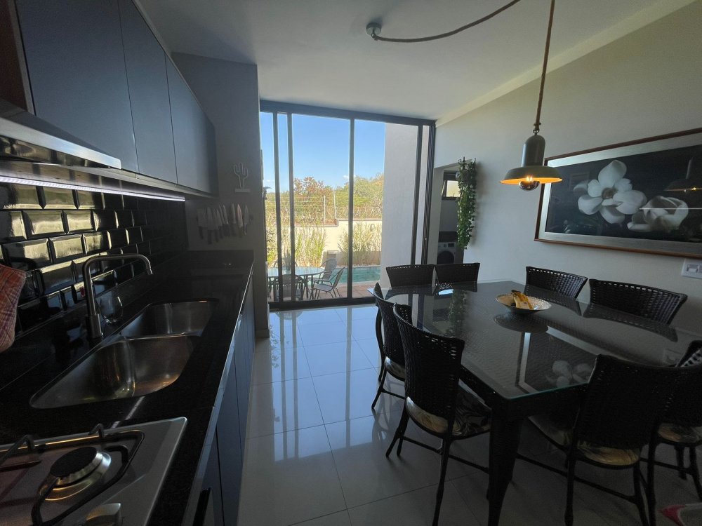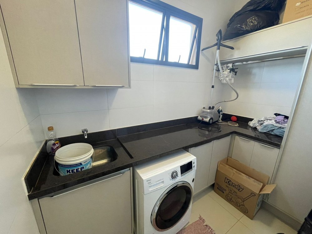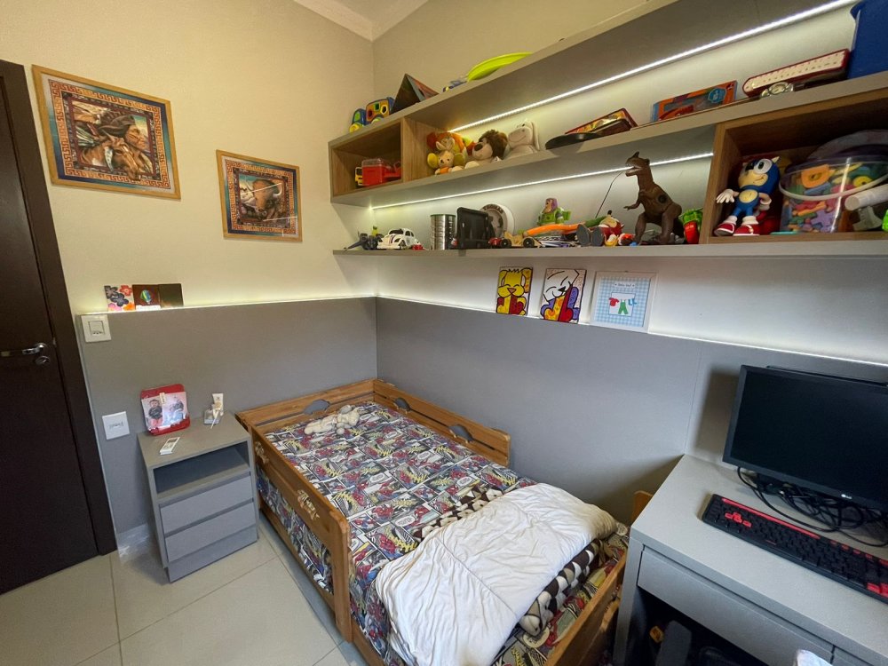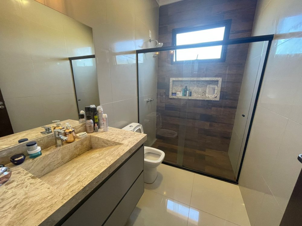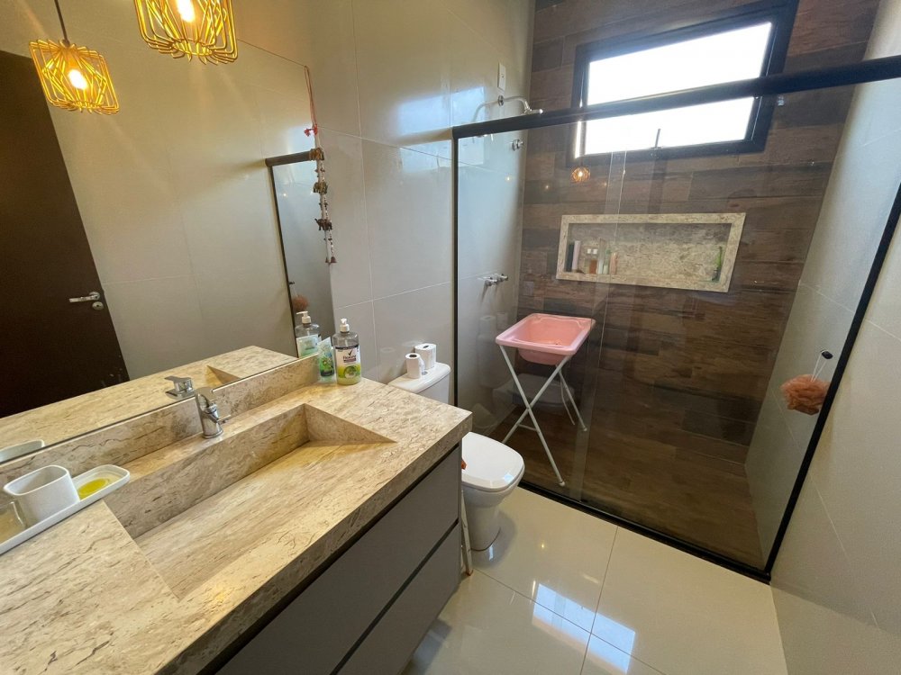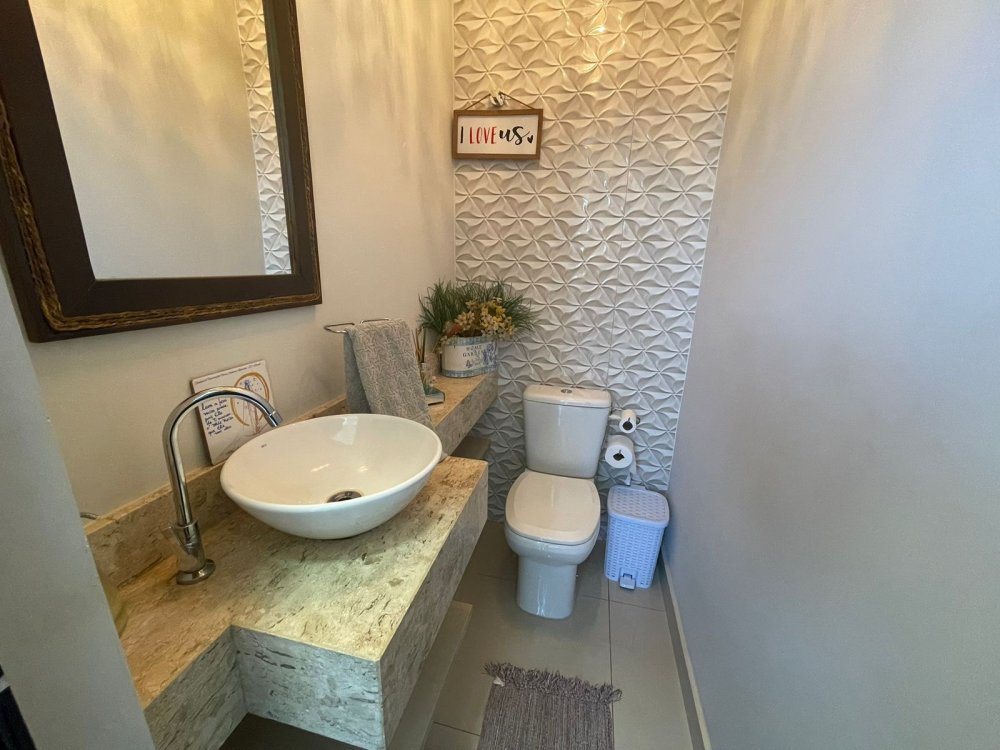 Ampla sala 2 ambientes com pé direito alto, integrada à cozinha gourmet com churrasqueira com exaustor e pontos para balcão e chopeira, lavabo, piscina aquecida com cascata, quintal com paisagismo e area de serviço. Na área intima, 3 amplos dormitórios, sendo 1 suíte master e banheiro social. Casa completa em projeto de iluminação, climatização e armários planejados CORRAGIO. Aquecimento solar com boiller de 500 lts. Sistema fotovoltaico com geração de R$ 600,00 de energia. Apenas 2 anos de construção. 6 vagas de garagem, sendo 3 cobertas.
