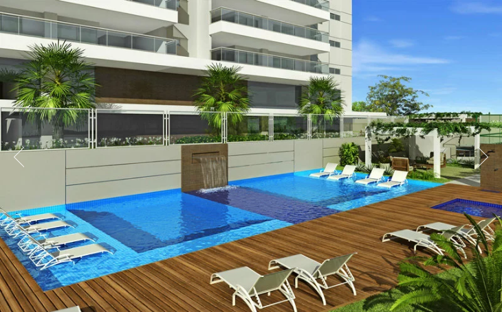 São cinco vagas na garagem, sendo três soltas e duas gavetas, além de uma área completa de lazer, com piscina aquecida, salão de festas e espaço gourmet totalmente equipado inclusive com uma chopeira personalizada com o nome do prédio.