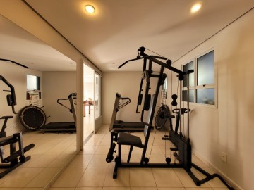 Condomínio com piscina, academia, área gourmet com churrasqueira e portaria diurna.