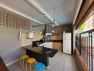 Um charme de apartamento contendo 1 dormitório com sacada- sala - sacada - cozinha americana planejada - área de serviço - 1 vaga de garagem.