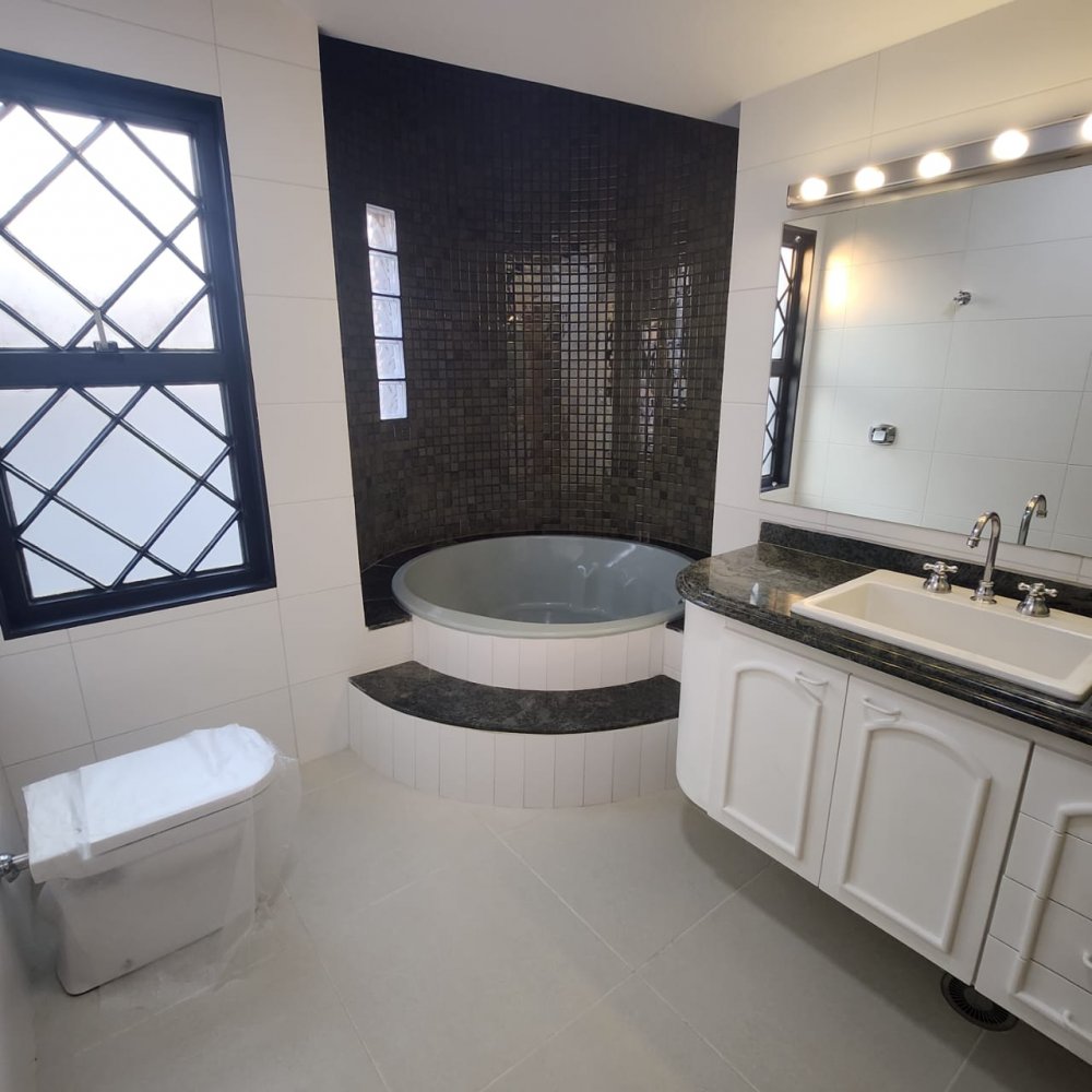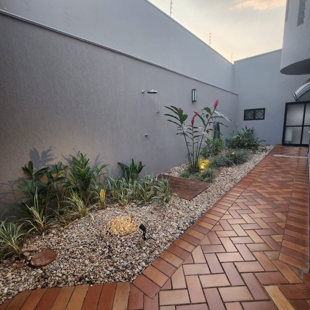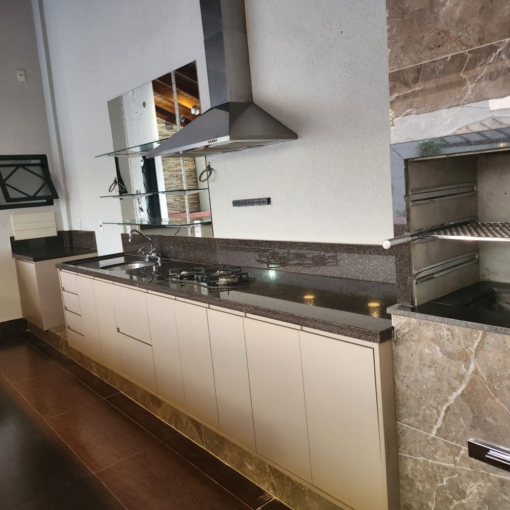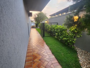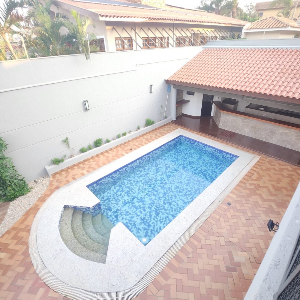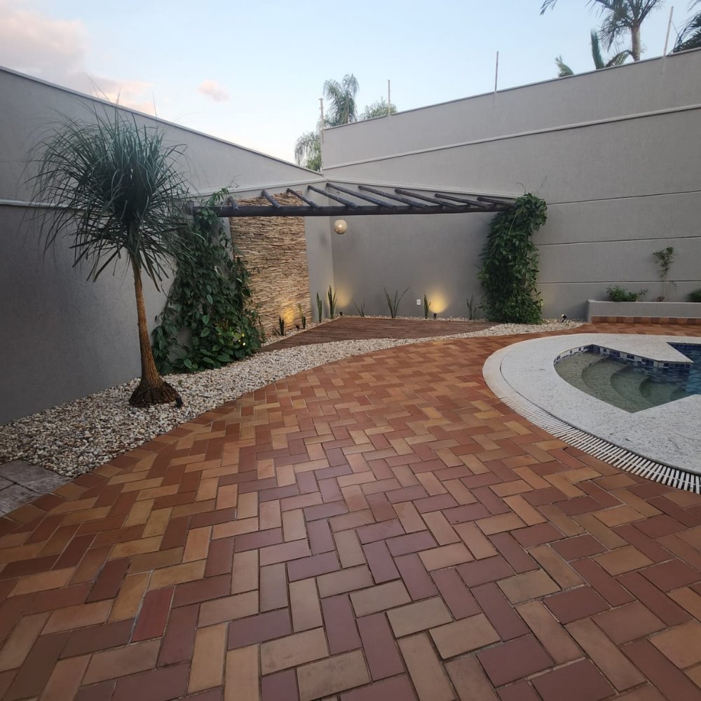Garagem para 4 carros, sendo 2 vagas cobertas. Hall de entrada, lavabo, escritório, salas estar e jantar, cozinha, lavanderia, despensa, quarto de empregados com banheiro área de serviço, bicicletário, piscina 4x8m e ampla área de churrasco com banheiro.