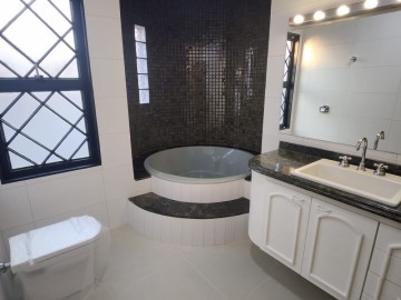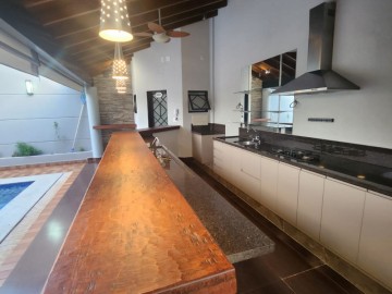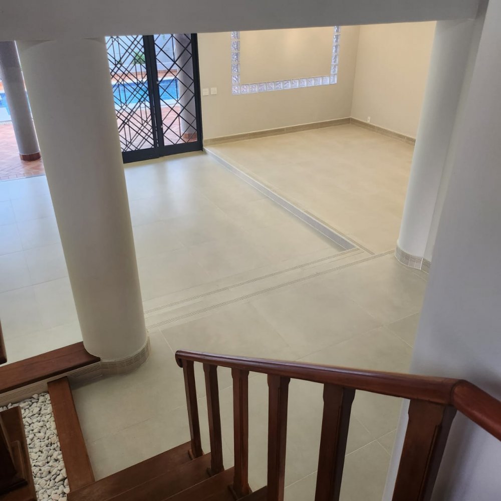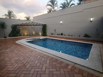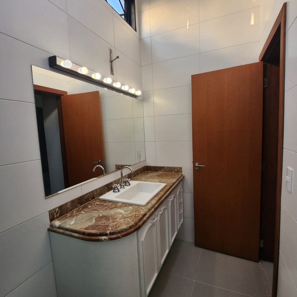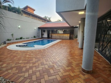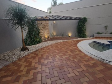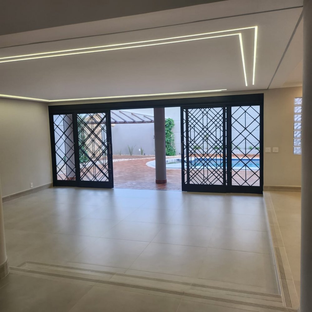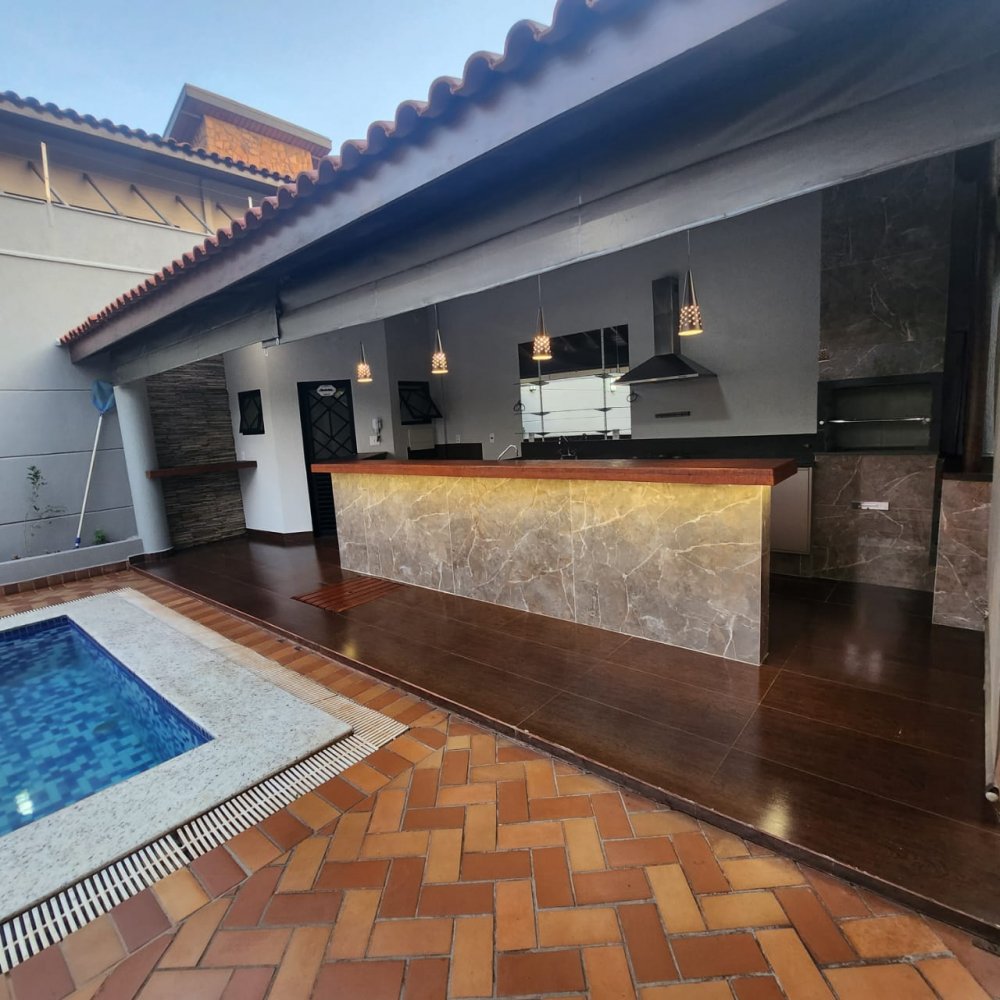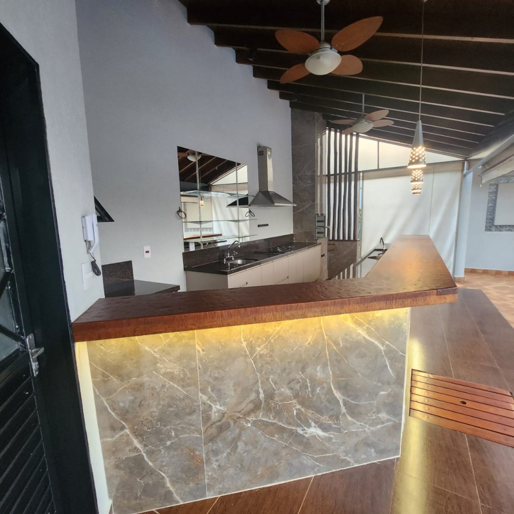 Garagem para 4 carros, sendo 2 vagas cobertas. Hall de entrada, lavabo, escritório, salas estar e jantar, cozinha, lavanderia, despensa, quarto de empregados com banheiro área de serviço, bicicletário, piscina 4x8m e ampla área de churrasco com banheiro.