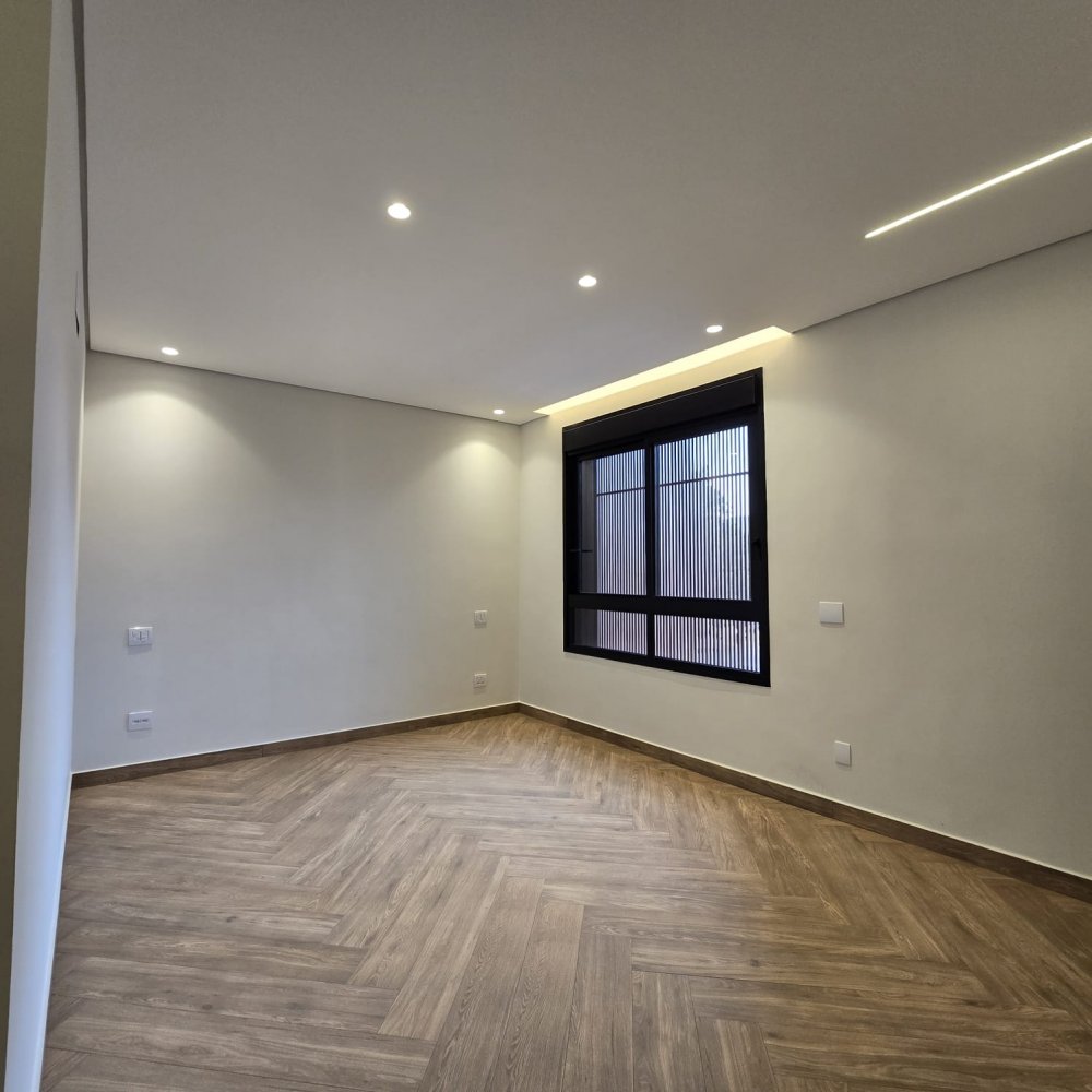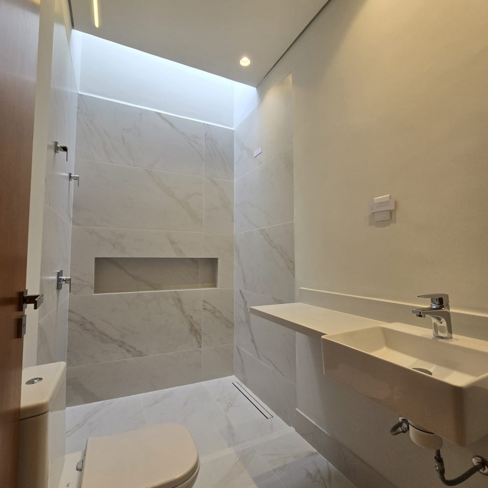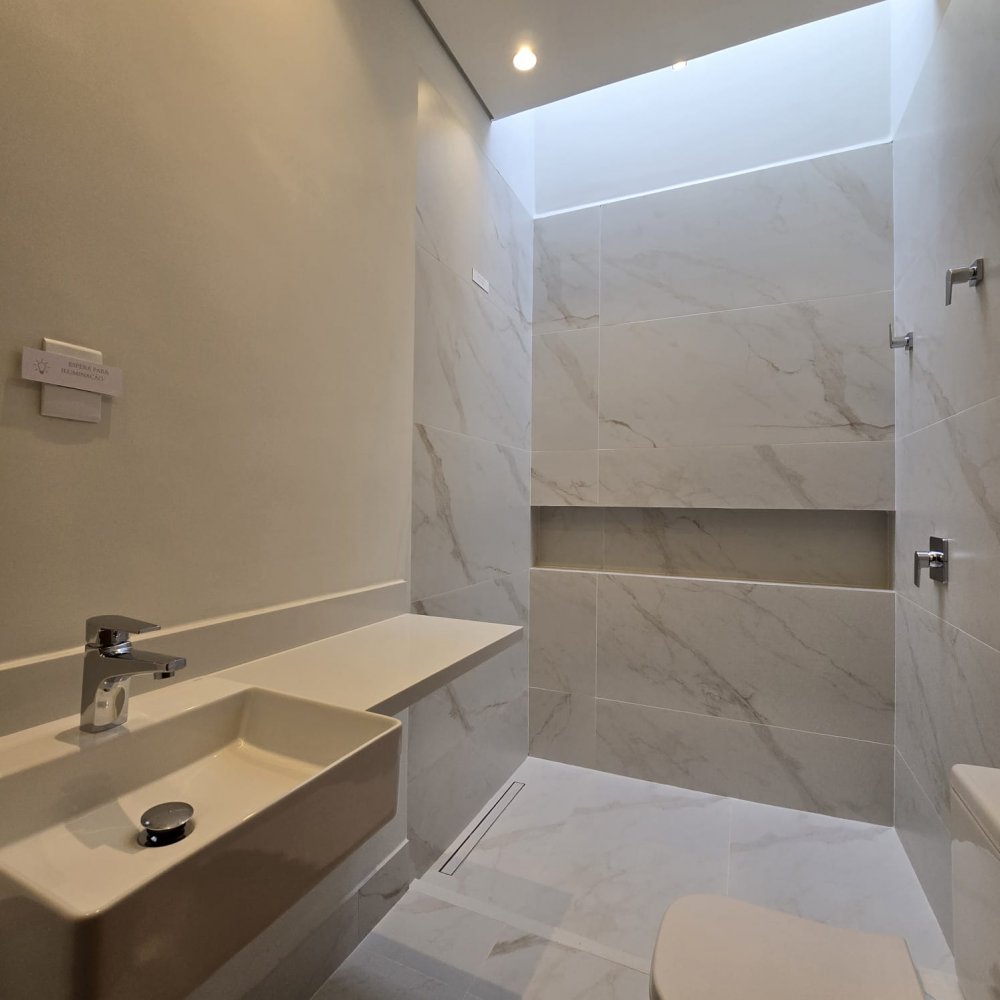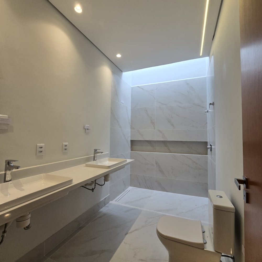 Térreo: 4 vagas na garagem, sendo 2 cobertas. Sala 2 ambientes com pé direito duplo, sala de tv/escritório no térreo (pode ser revertdo para 4° suíte), lavabo com ponto de chuveiro, área de serviço com passagem para roupa e 2 depósitos.