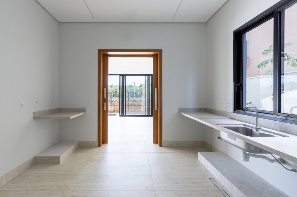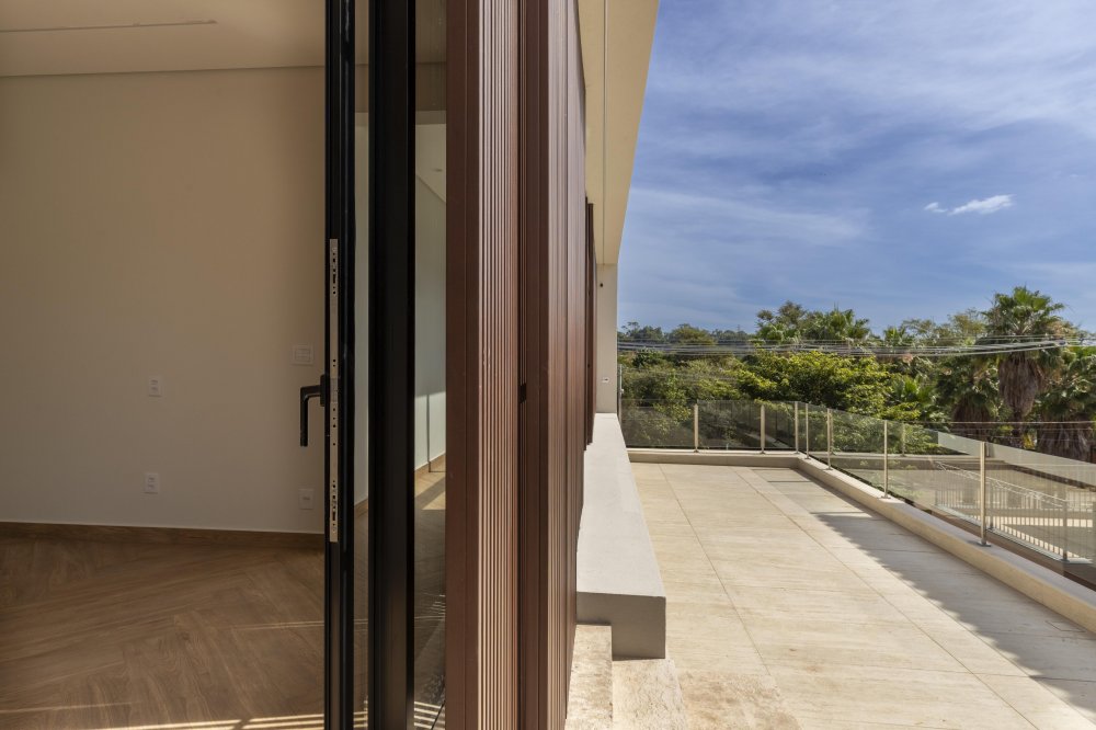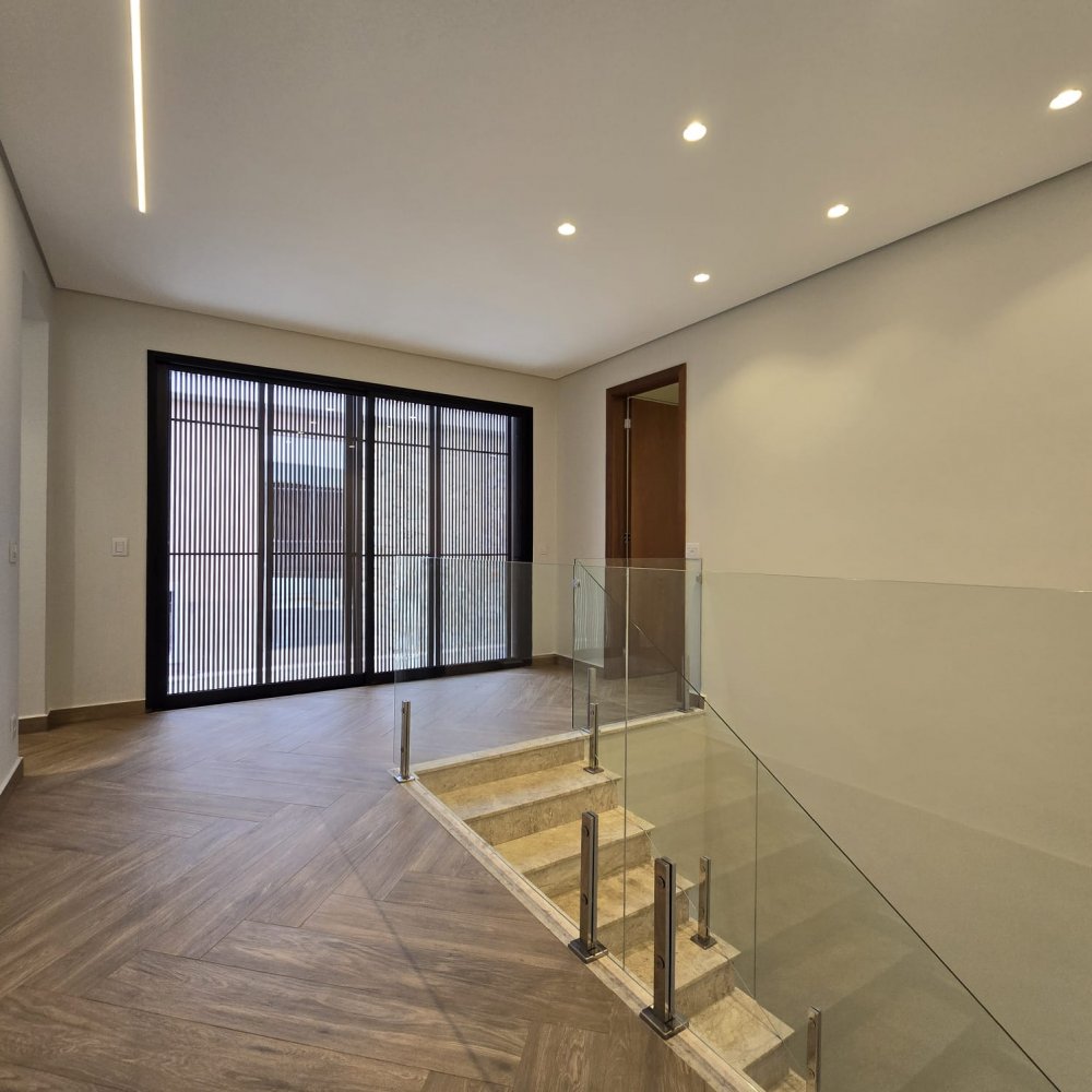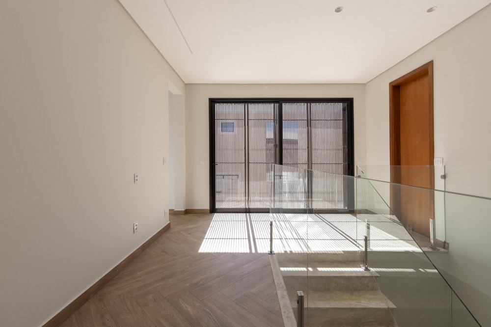 No piso superior: Jardim de inverno. Apoio com ponto de energia e água. 3 suítes com closet, sendo a master com banheiro de cuba e ducha dupla.