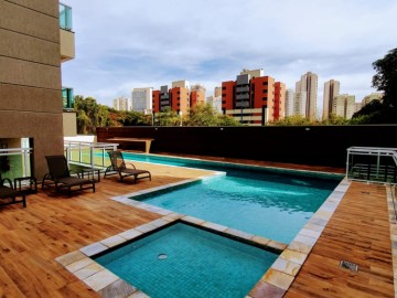 Condomínio com piscina, academia, quadra poliesportiva, salão de festas, playground, área de churrasco e salão de jogos.