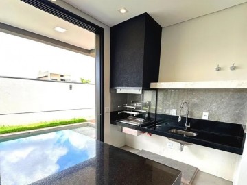 Garagem para 4 carros. Sala 2 ambientes com pé direito duplo. Lavabo com mármore translúcido. Cozinha com bancada em San Gabriel e Ilha com cooktop e coifa. Varanda gourmet integrada com bancada, churrasqueira com exaustor e ilha para copeira com infra. Lavanderia grande com dispensa. 4 suítes, sendo uma Master com banheira de hidromassagem, e uma suíte especial acessível para idosos ou deficiente. Piscina com prainha e hidromassagem.