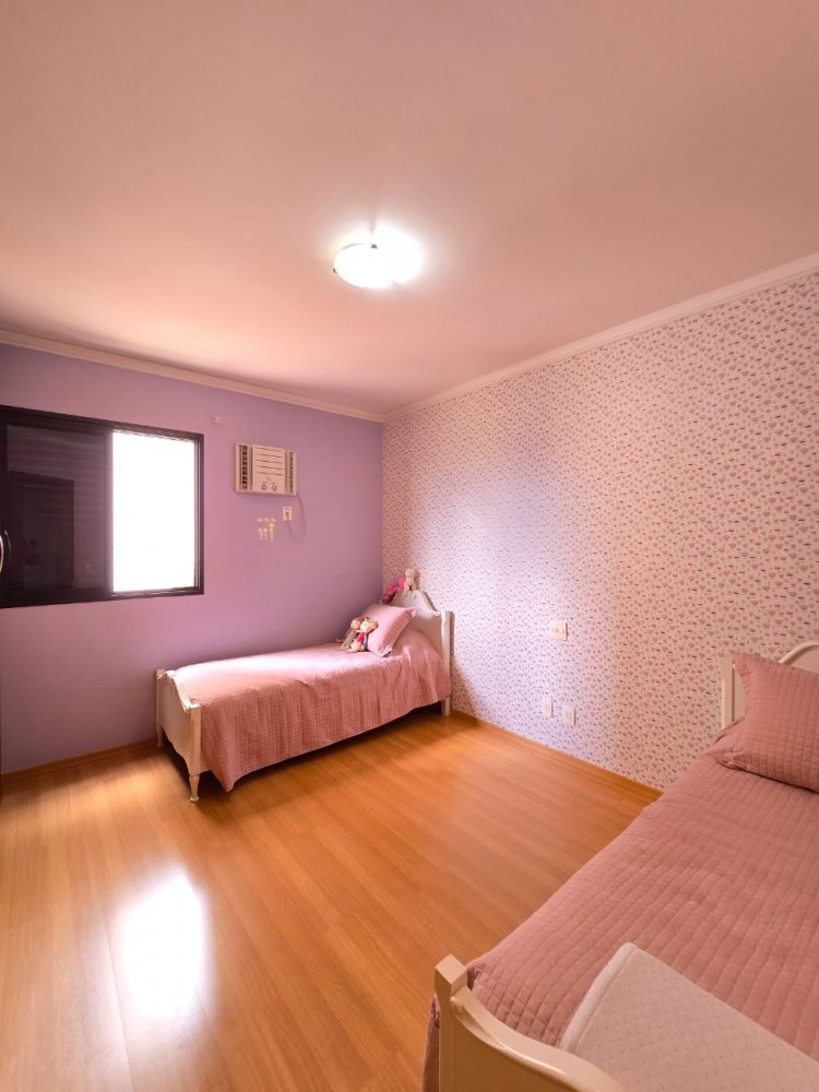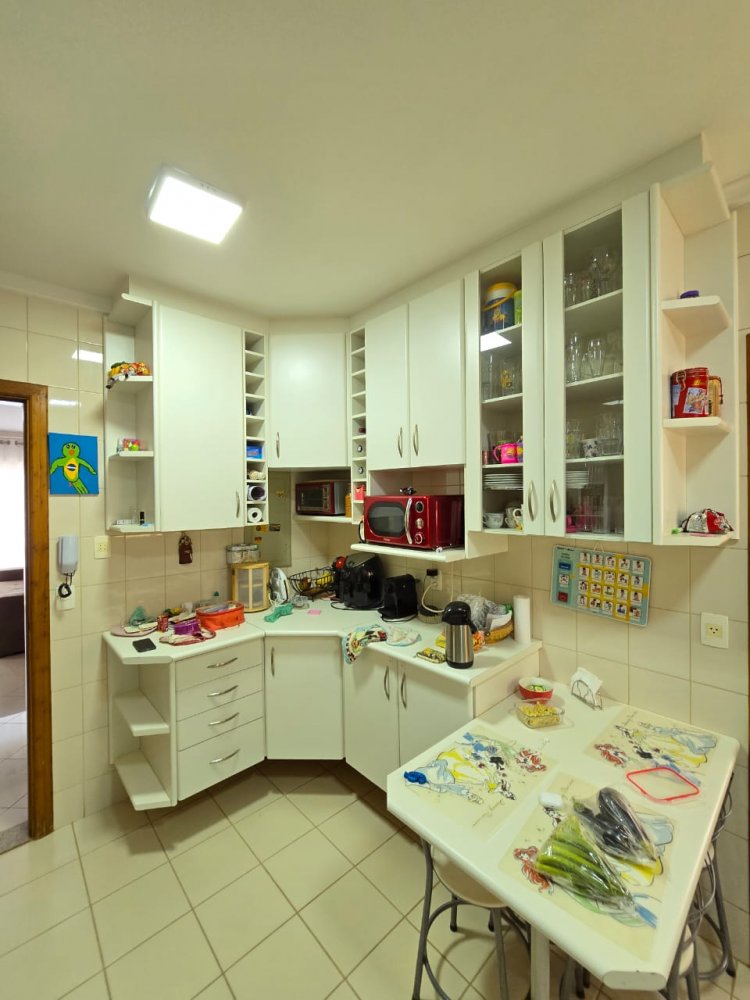 O apto conta com 4 dormitórios sendo 1 suite, rico em armários, ar-condicionado, luminárias, piso laminado, 2 vagas de garagens. Face sombra.