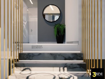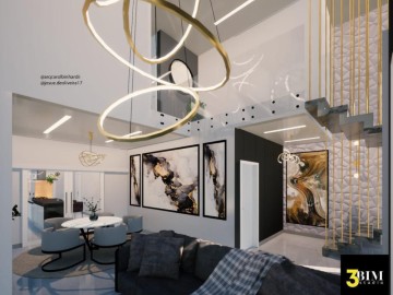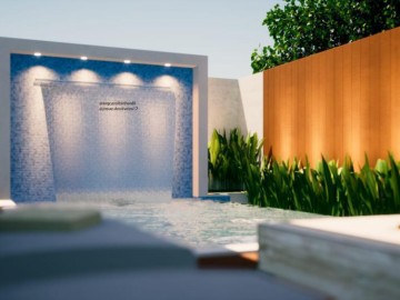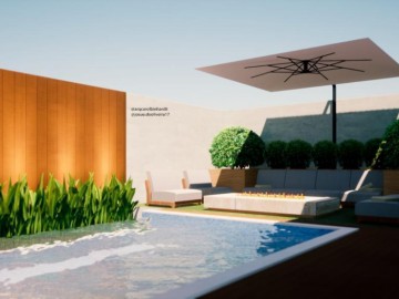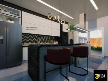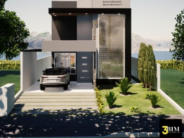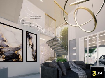 Garagem para 4 carros, sendo 2 vagas cobertas. Sala 2 ambientes com pé direito duplo no living, lavabo e escritório (reversível para home tv ou 4° suíte no térreo), cozinha, área de serviço, 3 suítes, sendo a master com closet e banheiro com cuba dupla. Varanda gourmet, piscina e vestiário.