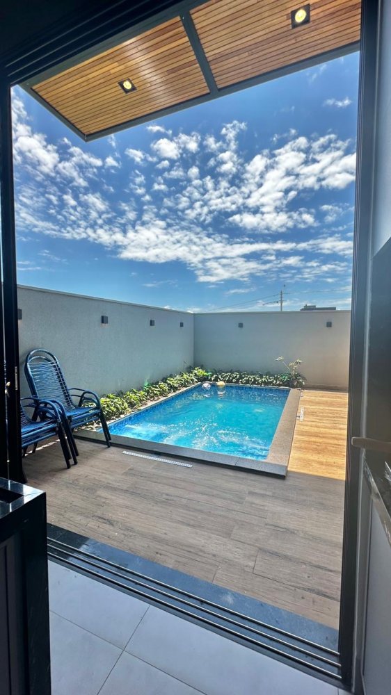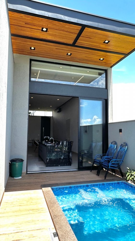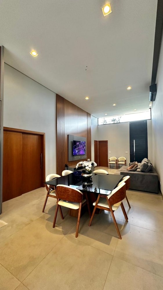 Sala 2 ambientes com pé direito alto, lavabo, cozinha gourmet, área de serviço, 3 suítes, sendo 1 com closet. Área externa com: piscina aquecida com hidromassagem e vestiário.