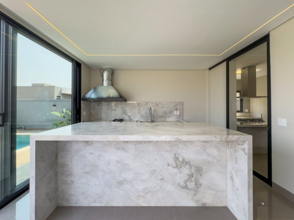 4 vagas na garagem, sendo 2 cobertas. Sala 2 ambientes. Lavabo. Escritório/home (reversível para dormitório). 3 suítes com armários, sendo a suíte master com closet e banheiro com 2 cubas. Cozinha ampla e separada do gourmet, com despensa e área de serviço. Ampla área gourmet, piscina e vestiário.