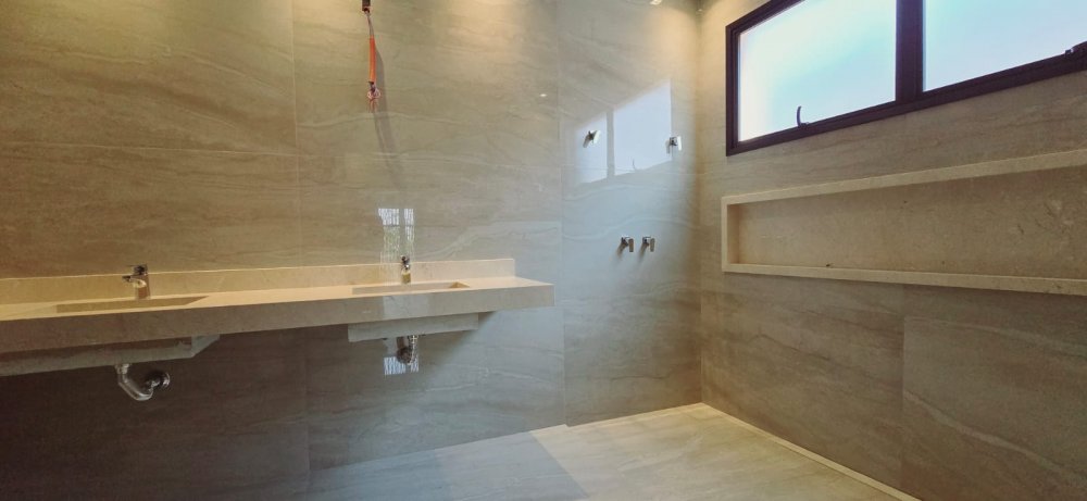 3 Suítes Amplas (sendo uma com closet, chuveiro duplo e cuba dupla) no piso superior e escritório/sala íntima.