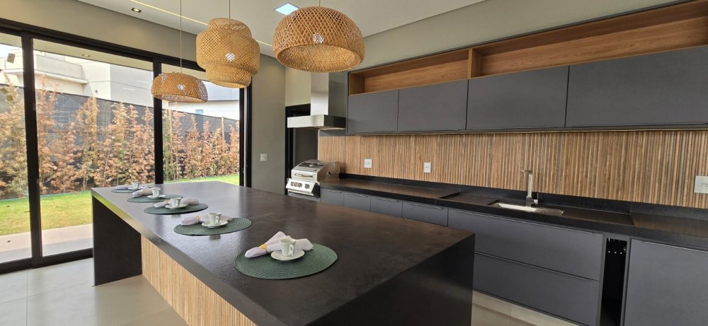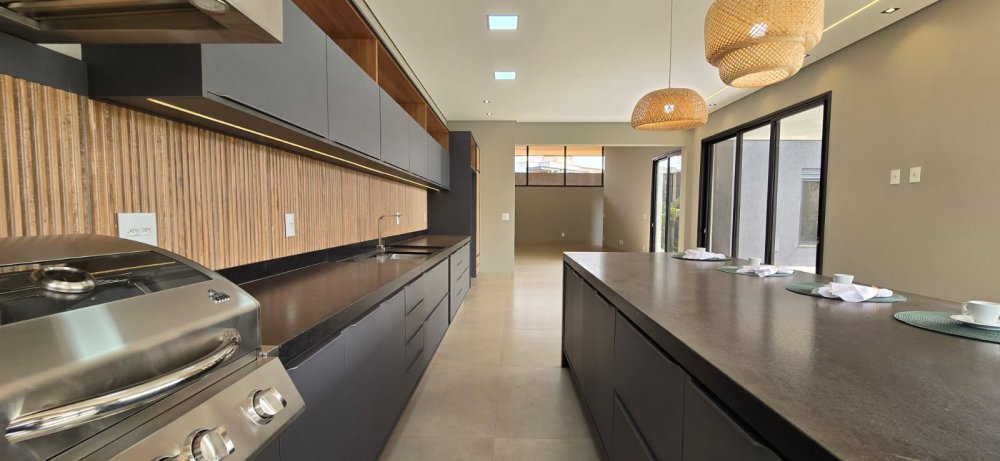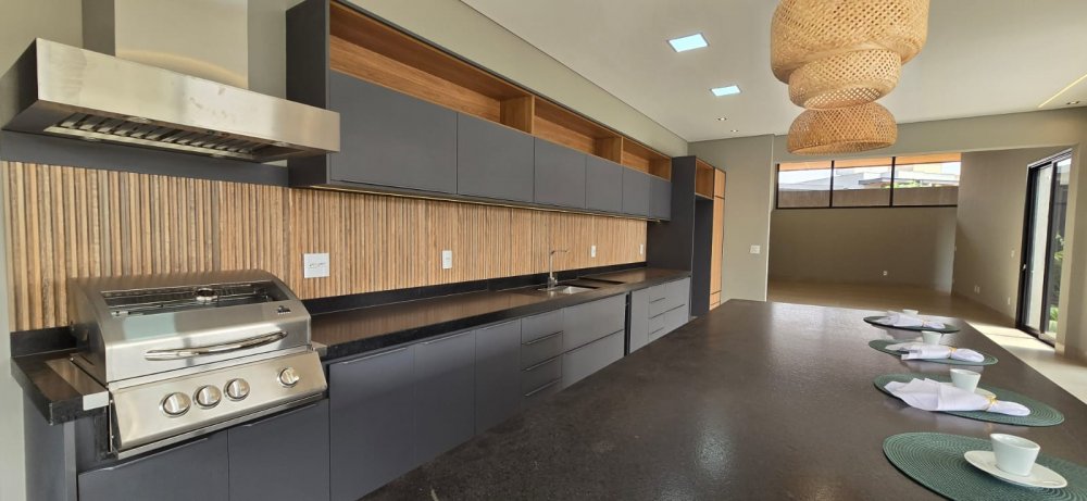 E para os encontros mais descontraídos, a varanda gourmet com ilha e churrasqueira a gás é o coração da casa, onde a diversão e o lazer se encontram.