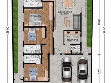 Garagem para 4 carros, sendo 2 cobertas. Sala 2 ambientes, lavabo, escritório, 3 suítes, cozinha gourmet integrada ao paisagismo externo da casa, área de serviço. Encanamento de água quente em todos os banheiros, cozinha e lavanderia preparado para receber placas e boiler. Pontos de ar condicionado em todos os dormitórios e sala.