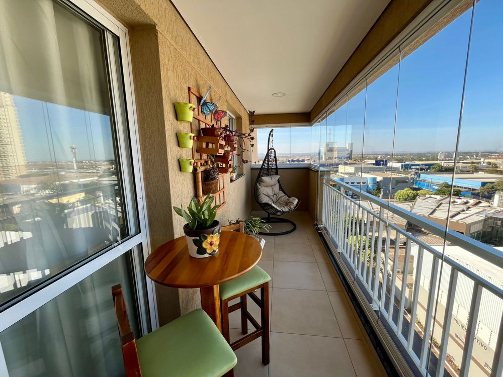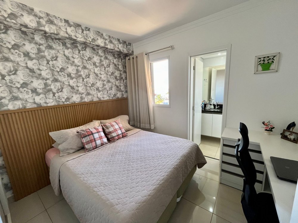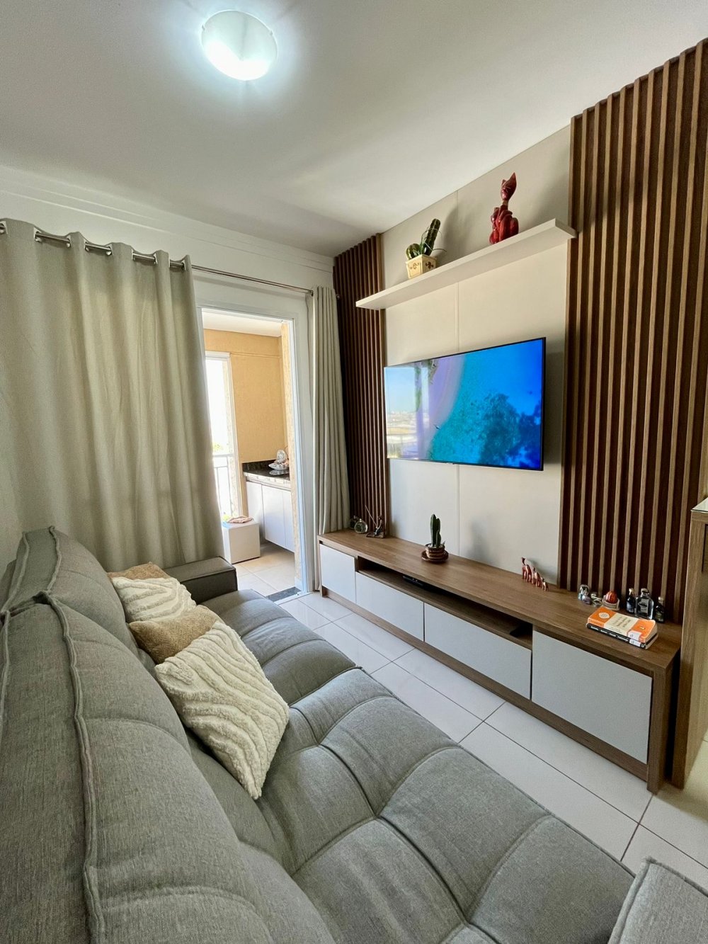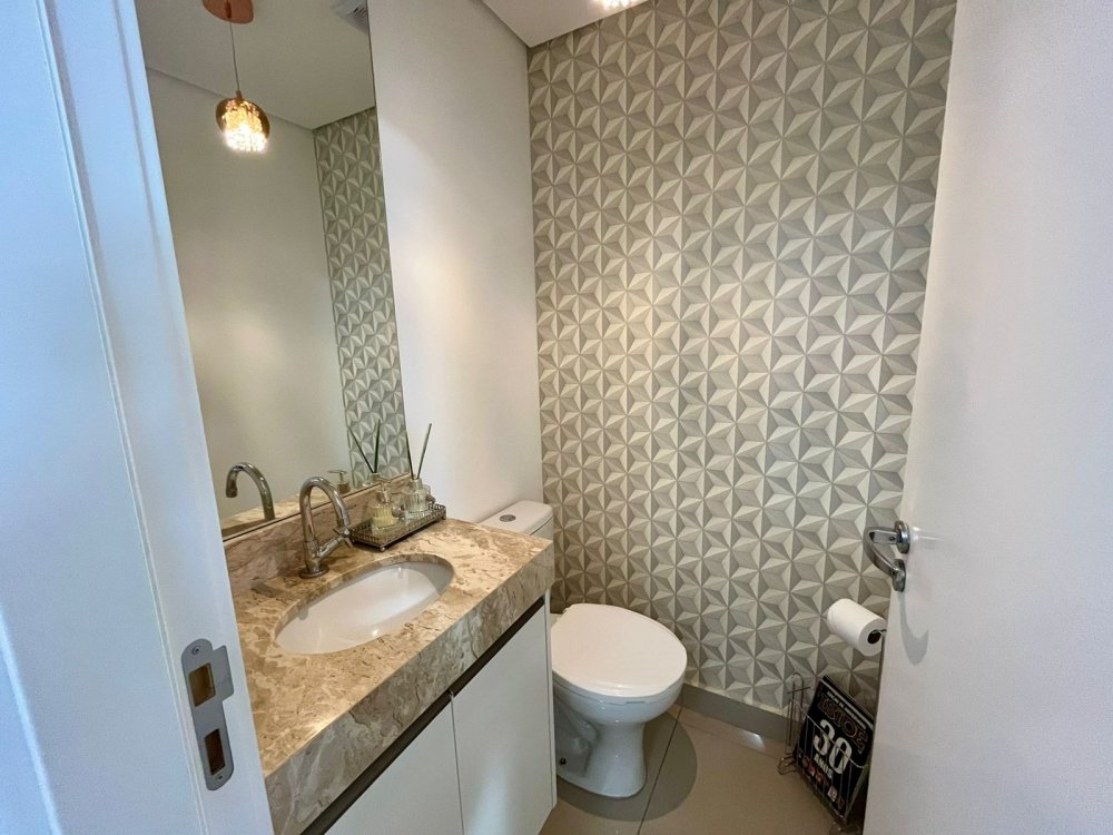 Apartamento possui 76,87m², com 2 suítes, 2 vagas de garagem, lavabo, varanda gourmet ampla já fechada em vidro, completo em armários e 03 aparelho de ar condicionado split.