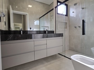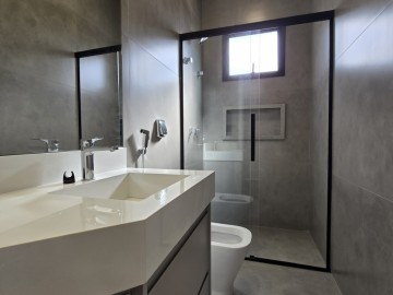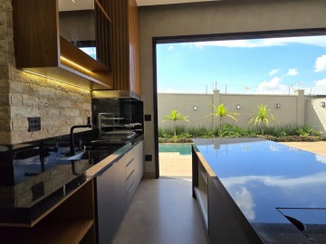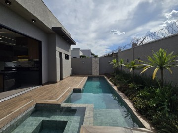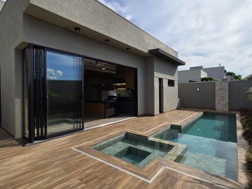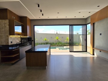 Casa térrea. 4 vagas na garagem. Sala 2 ambientes, integrada à cozinha. Lavabo. 3 suítes. Piscina com hidro e aquecimento. Armários entregue em todos os ambientes.