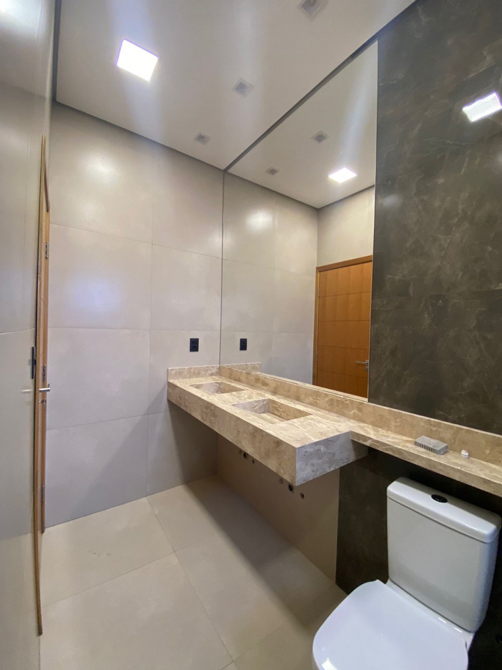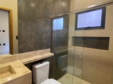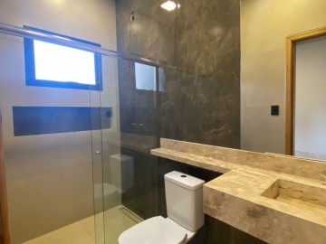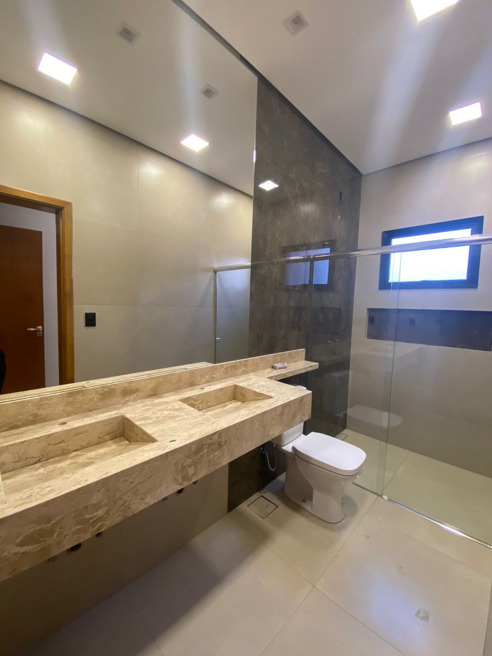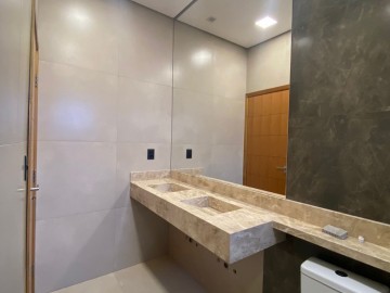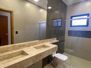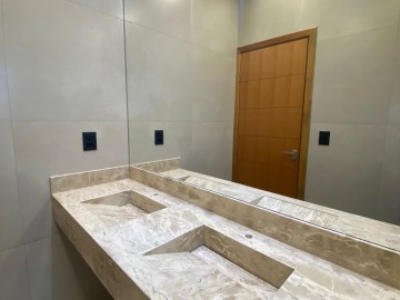 3 suítes grandes, com box e espelho, sendo a suíte do casal com cuba dupla.
