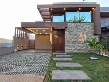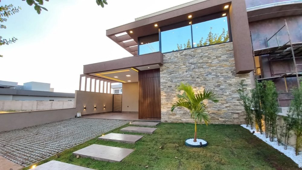 Arquitetura diferenciada, frente imponente e projeto luminotécnico que destaca cada ponto da casa.