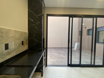 Área gourmet, cozinha, sala de jantar e sala de estar integradas, porém separadas por grandes portas de vidro, trazendo luz, ventilação e individualização dos ambientes.