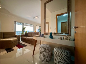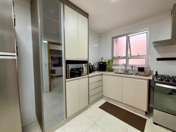 Com 140m², sendo: 3 espaçosas suítes - master com closet, sala dois ambientes, lavabo, varanda gourmet com churrasqueira, fechamento em vidro e vista livre, espaçosa cozinha planejada e lavanderia. Agua quente em todas as torneiras. 2 vagas de garagem cobertas + box privativo.