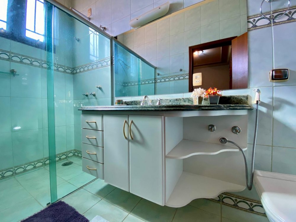 - No piso superior: Sala intíma e 3 amplas suítes com armários e ar-condicionado - máster com closet, hidro e cubas duplas;
