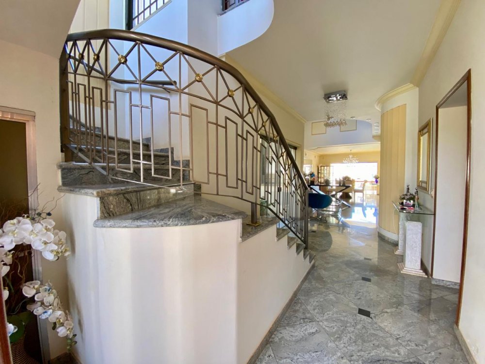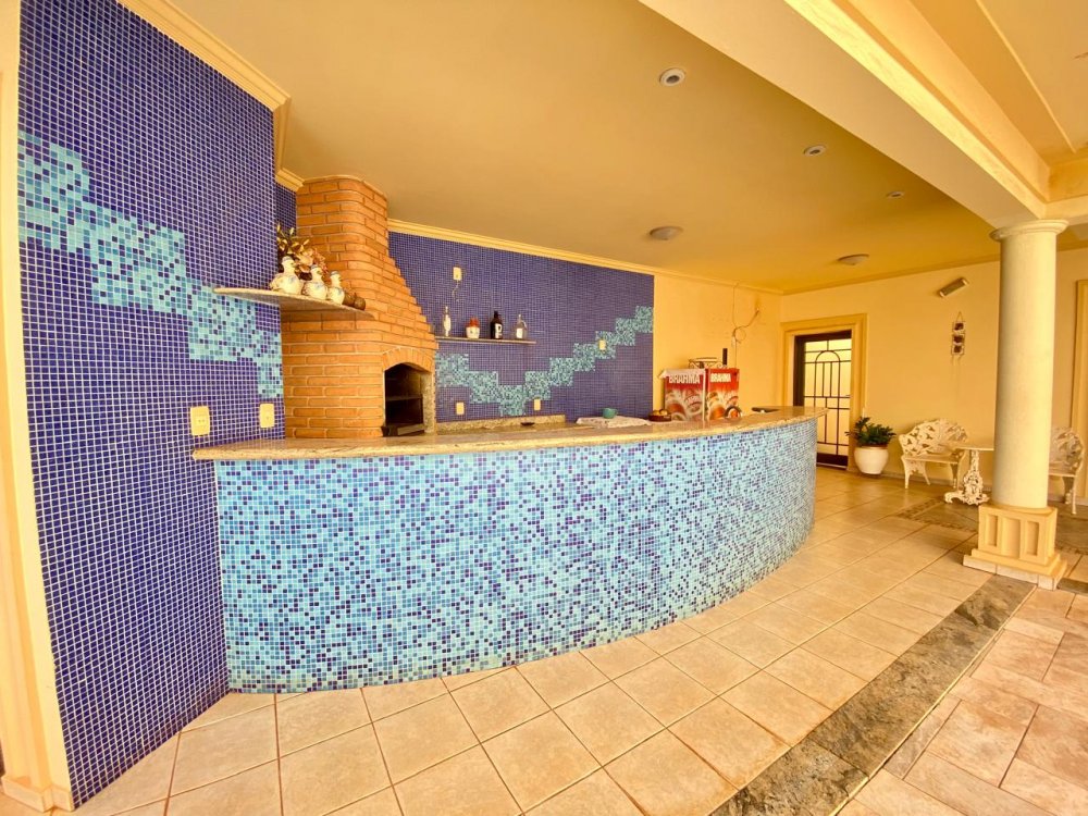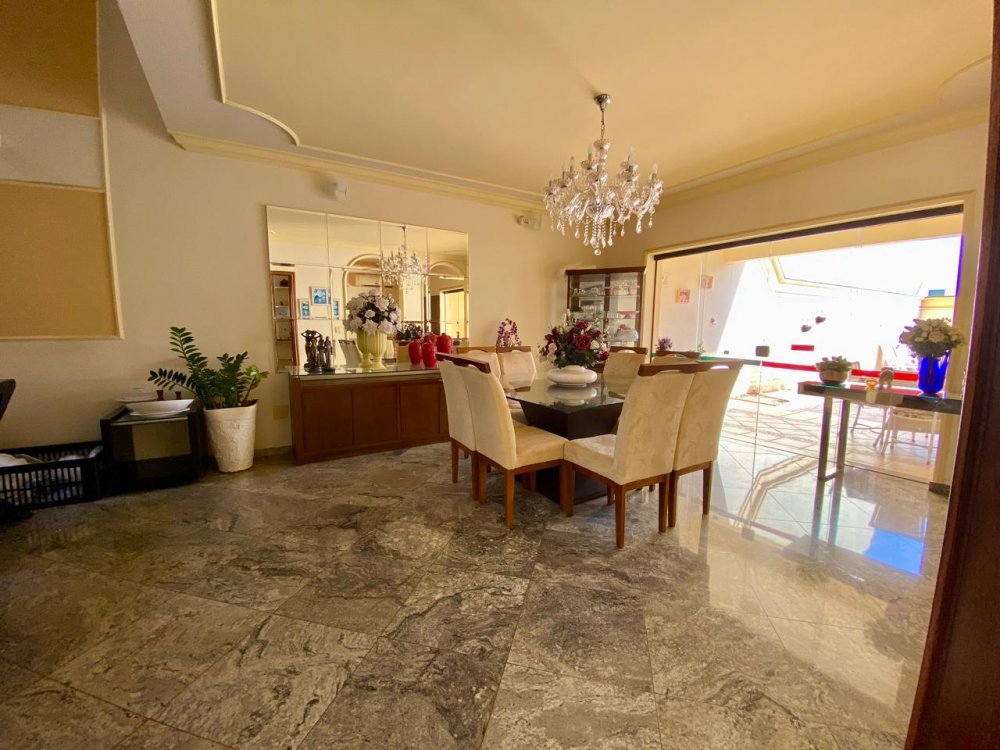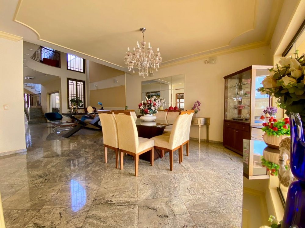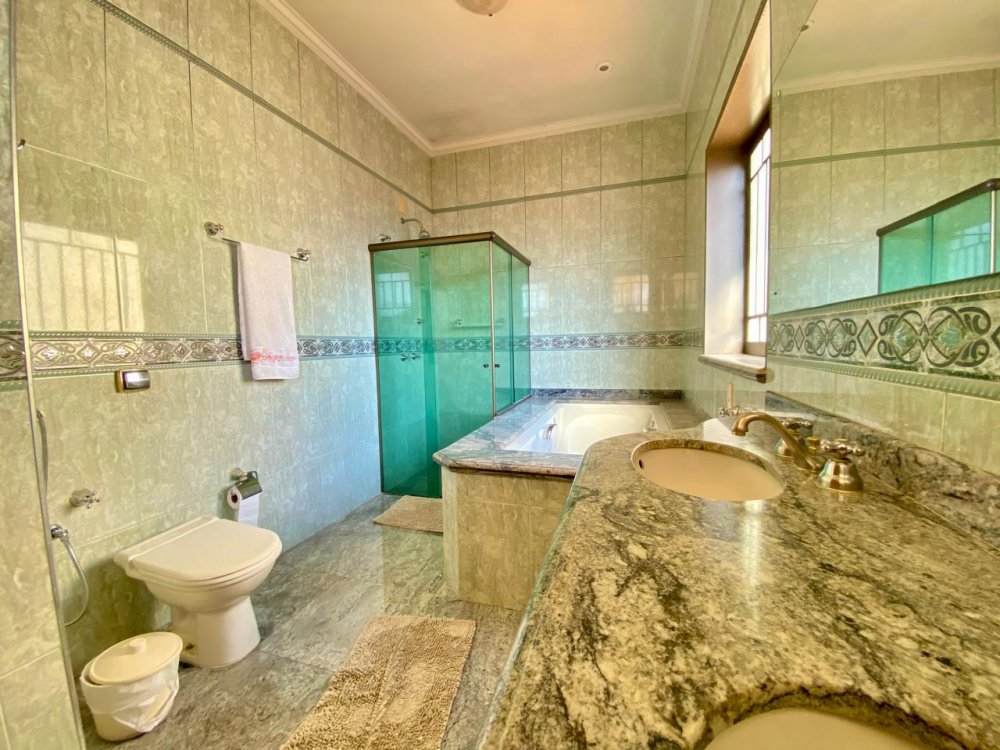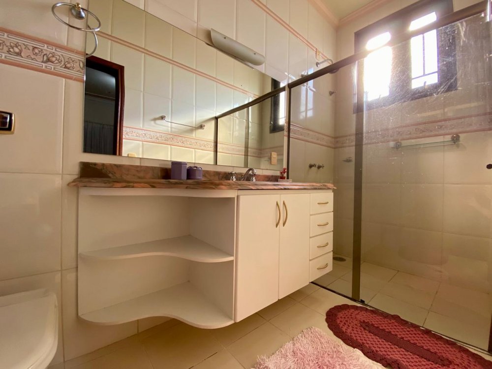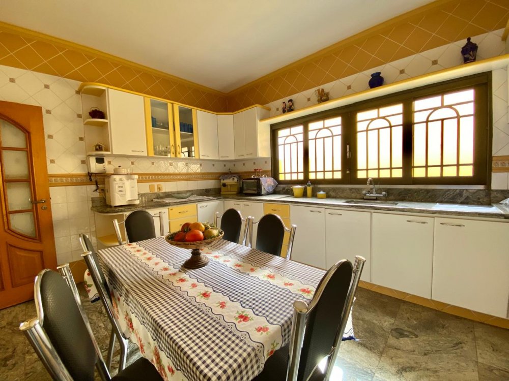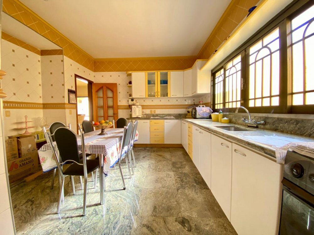 - No piso térreo: Sala de estar, sala de jantar e sala de TV, lavabo, cozinha completa em armários com despensa, lavanderia com dormitório e banheiro. Ampla área externa com varanda, espaço gourmet com churrasqueira, piscina e banheiro externo. Área com bastante privacidade. 4 vagas, sendo 2 cobertas.
