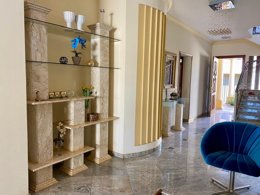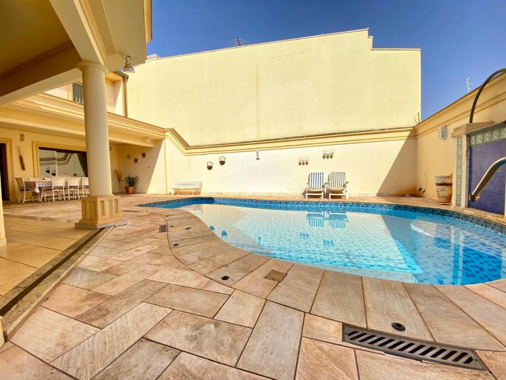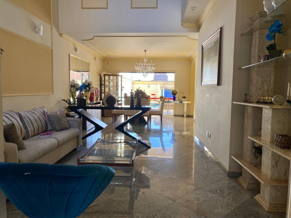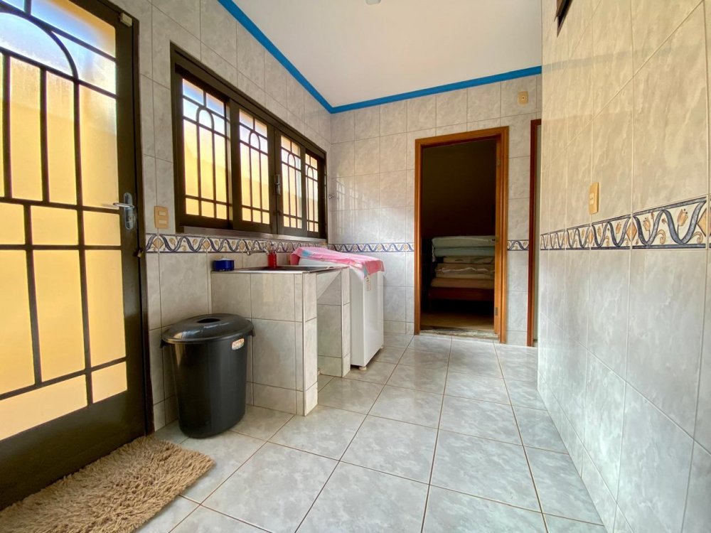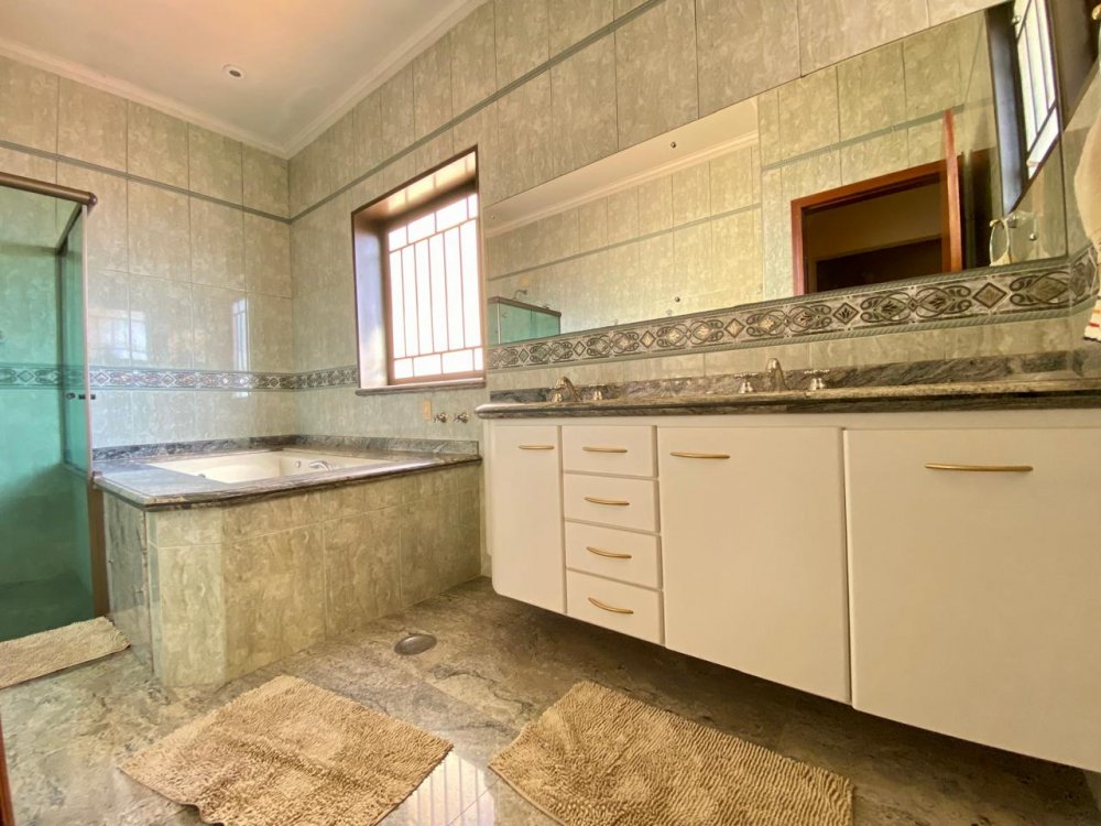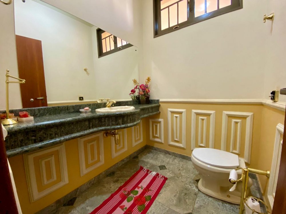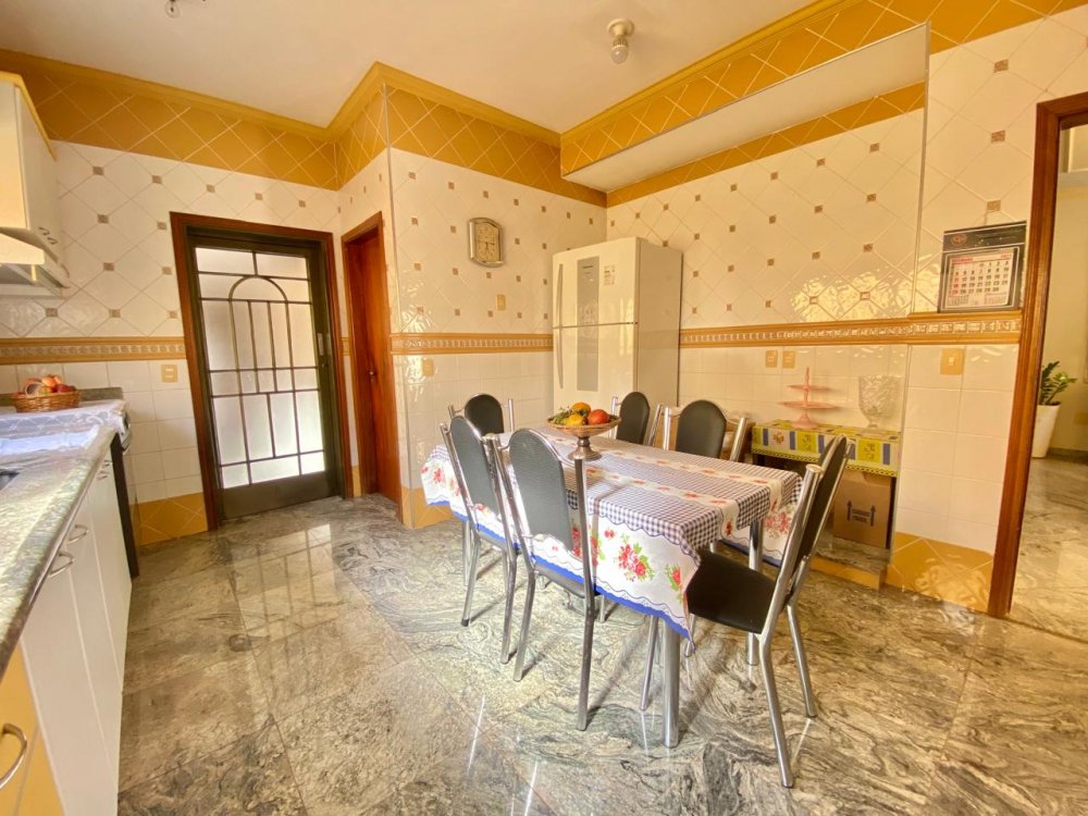 - No piso térreo: Sala de estar, sala de jantar e sala de TV, lavabo, cozinha completa em armários com despensa, lavanderia com dormitório e banheiro. Ampla área externa com varanda, espaço gourmet com churrasqueira, piscina e banheiro externo. Área com bastante privacidade. 4 vagas, sendo 2 cobertas.