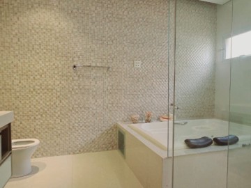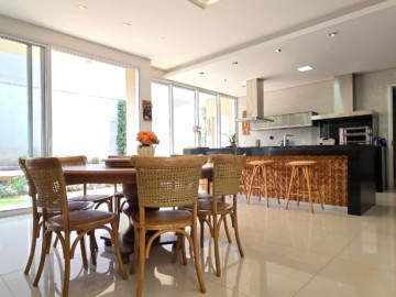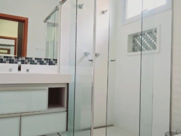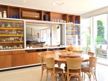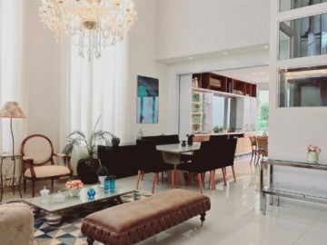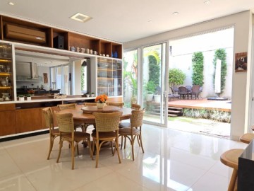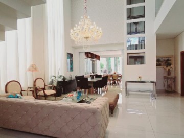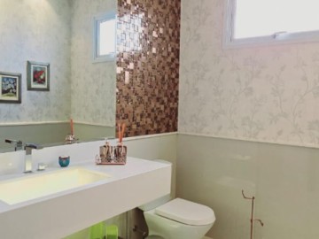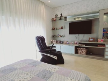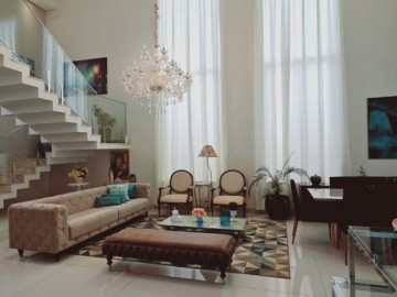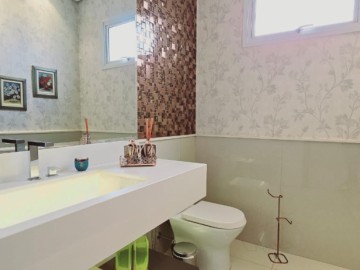 4 Vagas de garagem, sendo 2 cobertas. Sala ampla para living e jantar. Home TV com armários planejados com iluminação, com tela embutida para projetor e estrutura para projetor. Brinquedoteca/escritório com banheiro (pode ser a 5° suíte). Lavabo amplo decorado com pedra ônix iluminada. Área de serviço rica em armários planejados.